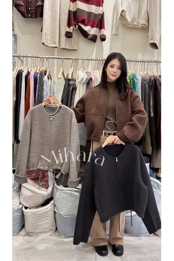 A24 1022Love針織家羊毛羊絨混紡圓領外套