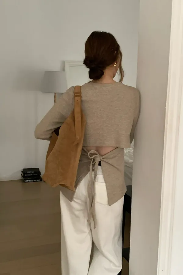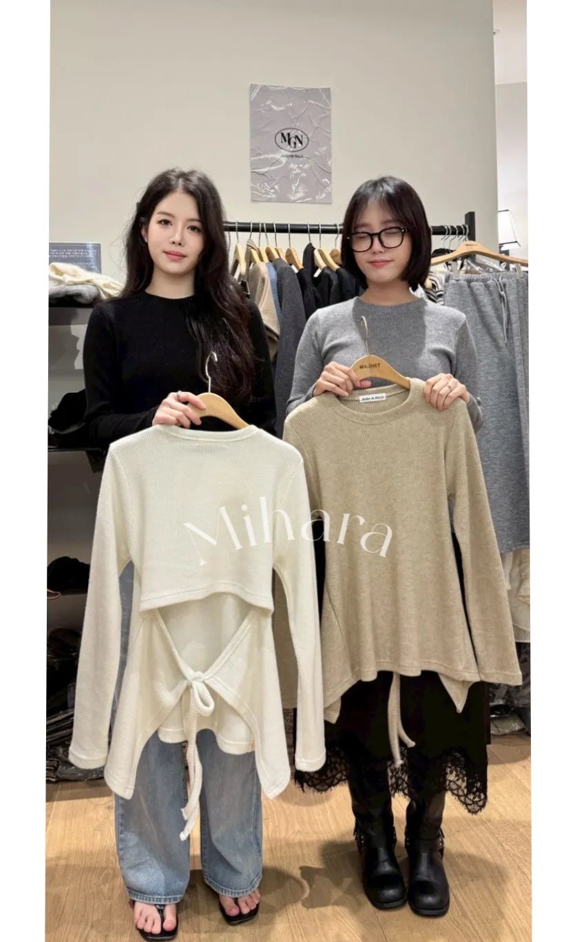 A13 1023高檔小香家後綁帶挖空圓領上衣