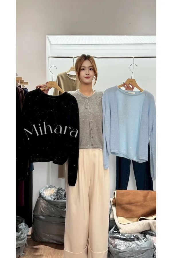 A20 1023名媛家微閃亮片排釦圓領羊毛混馬海毛針織上衣