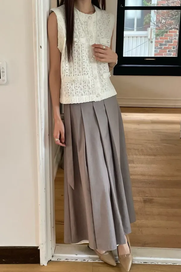 A23 1023名媛家側開衩寬百褶西裝半裙