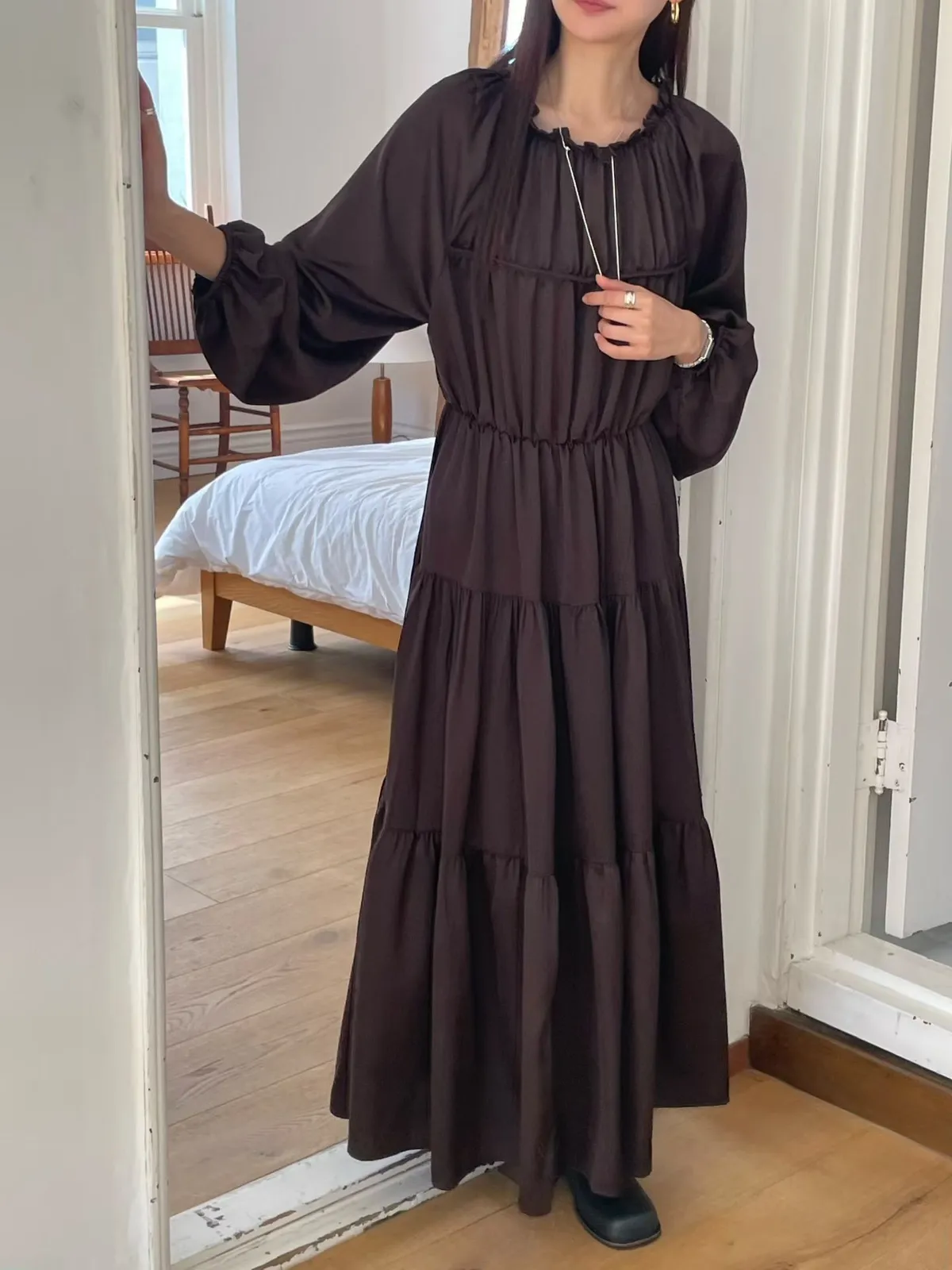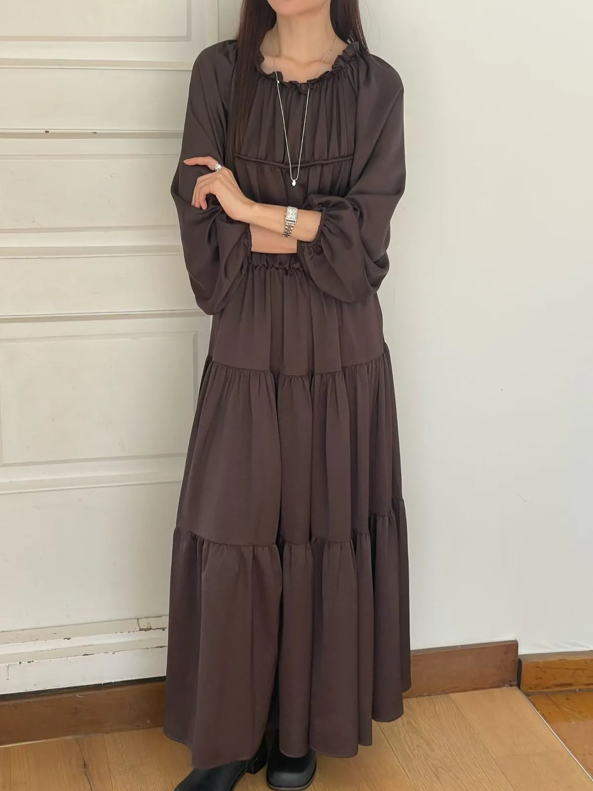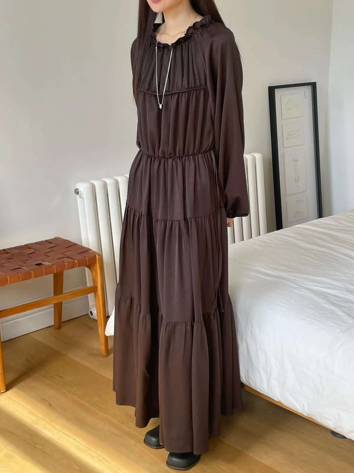 A25 1023(限量特)名媛家雙綁帶圓領可拉一字領蛋糕洋裝