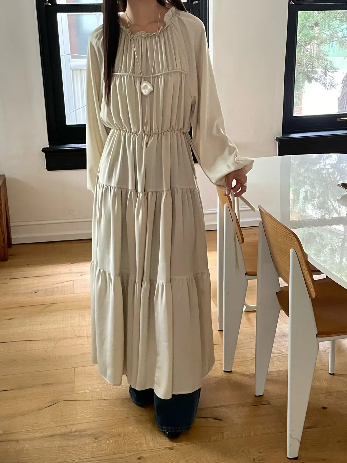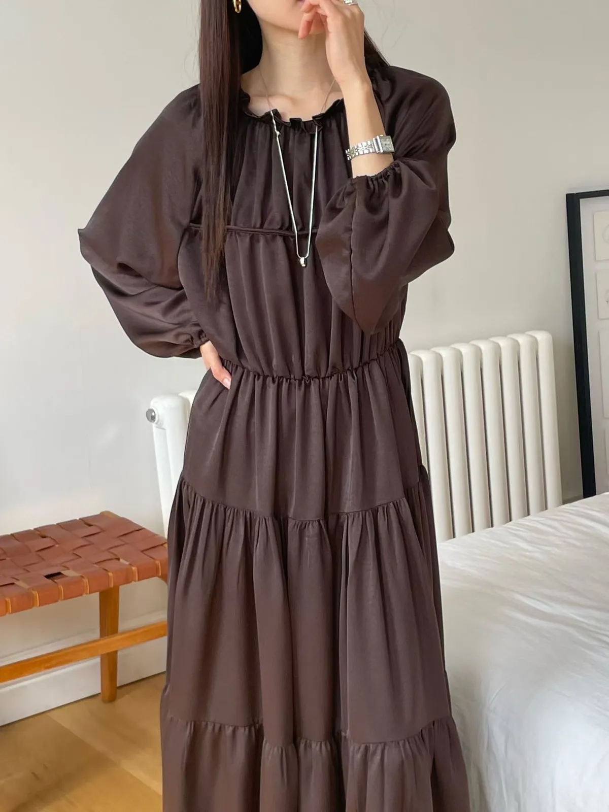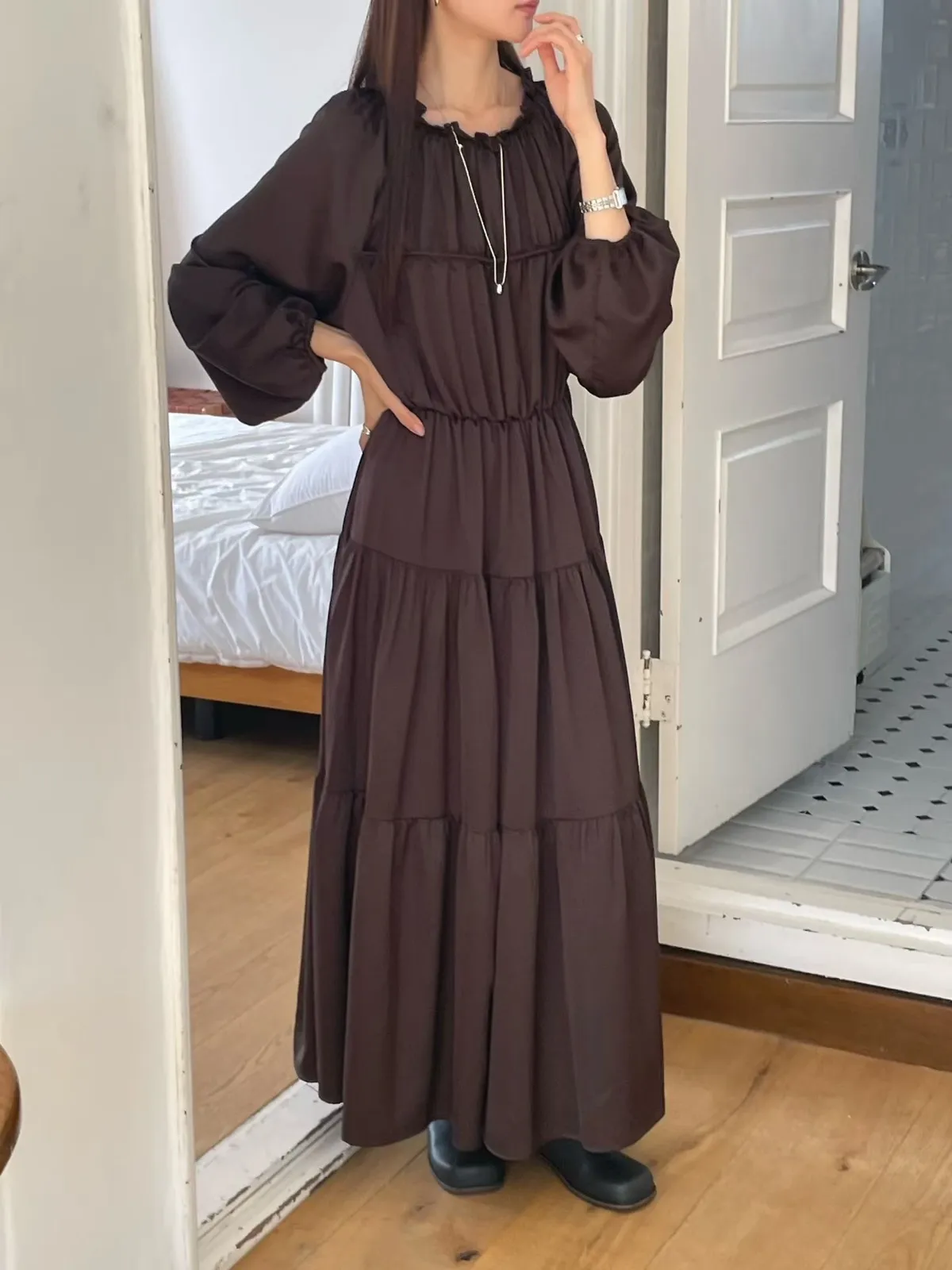 A25 1023(限量特)名媛家雙綁帶圓領可拉一字領蛋糕洋裝