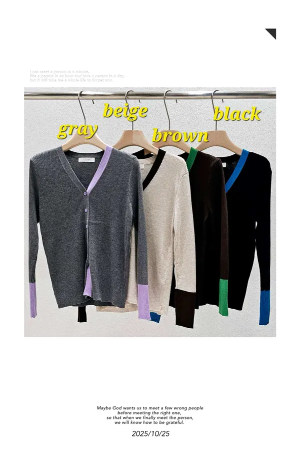 A21 1026V領拼色針織上衣