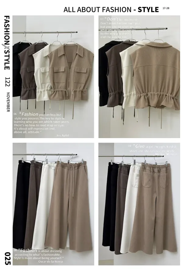 1026翻領拉鏈背心+長褲(set)4色
