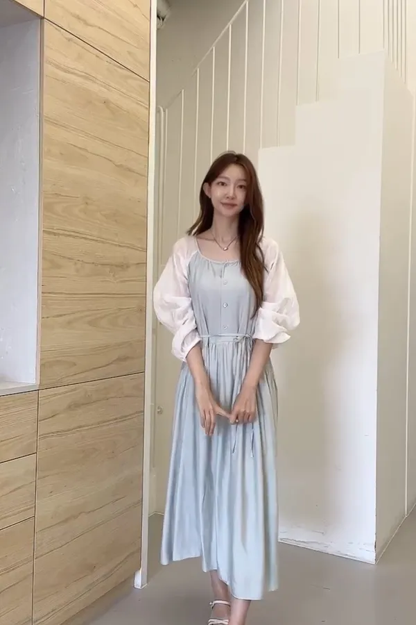 C36仙女歐膩拼接袖洋裝3色