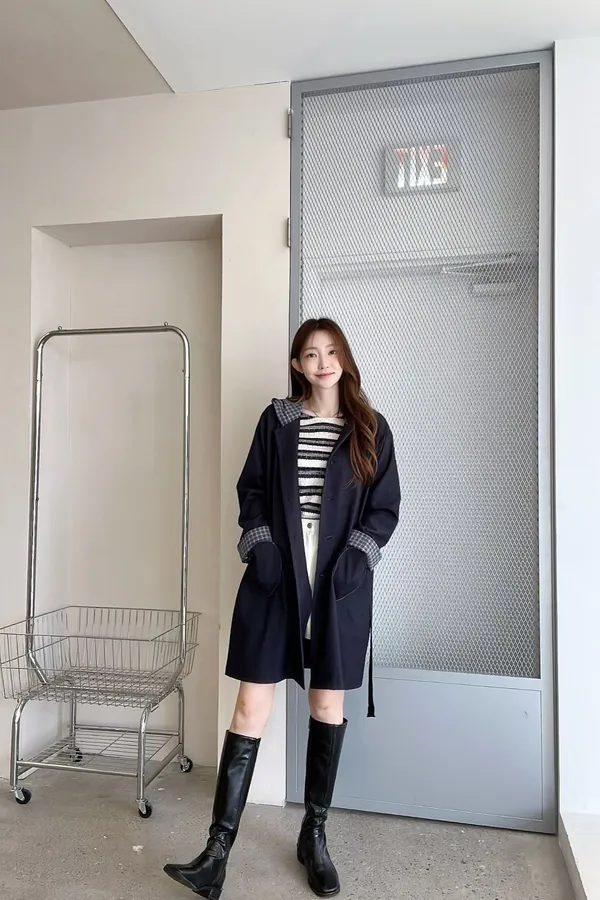 C21仙女歐膩格紋連帽愛心口袋風衣外套3色