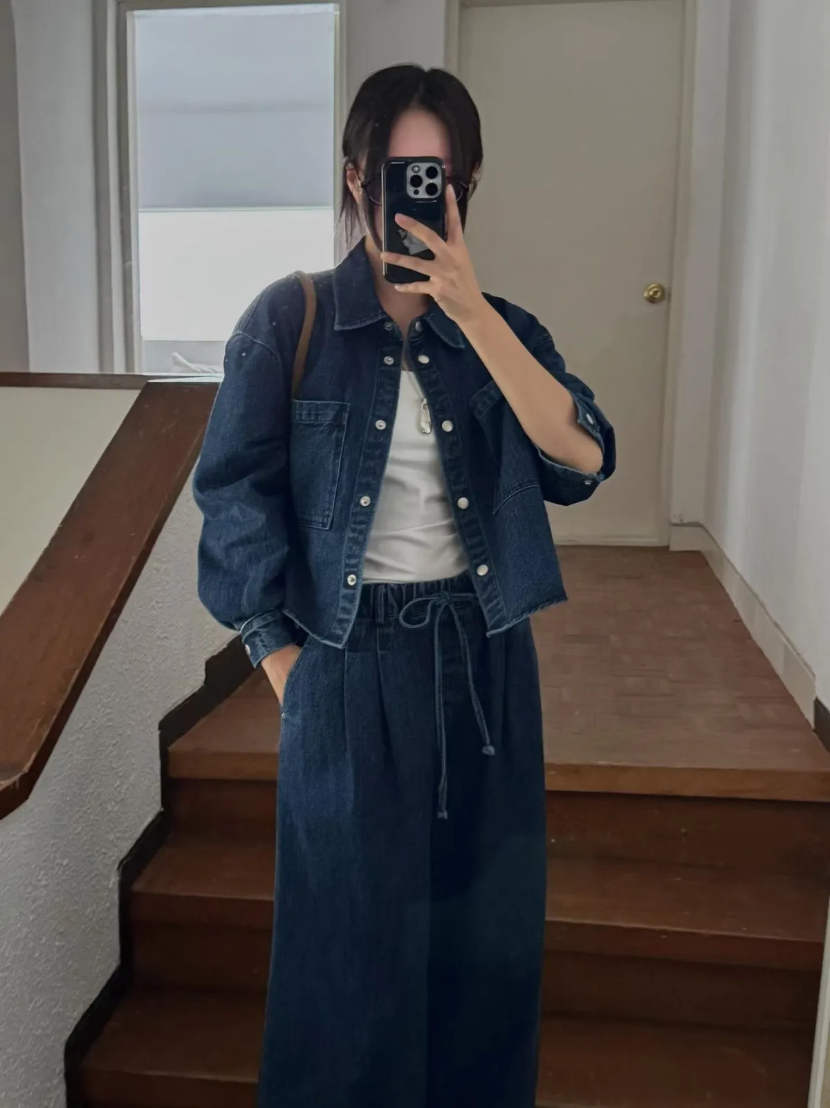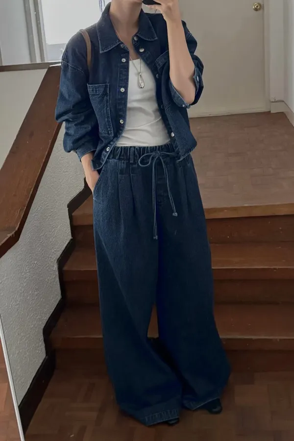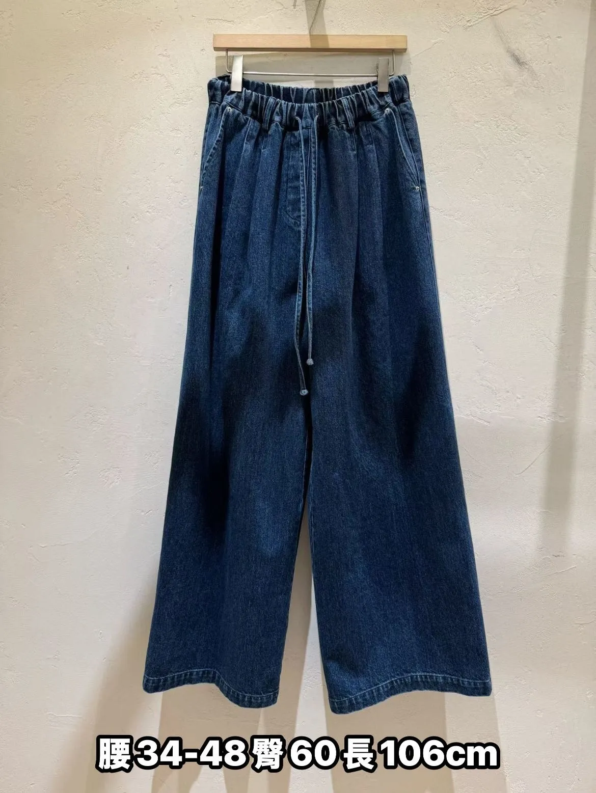C2高檔字母家抽繩綁彈性牛仔寬褲
