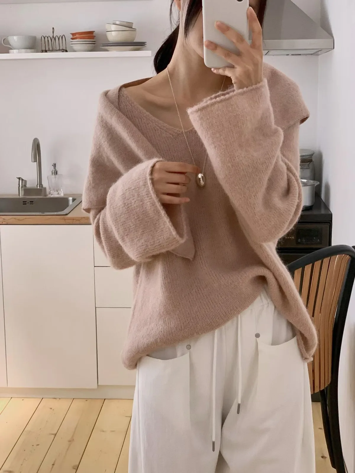 Freesize ;胸58 長66cm(馬海羊毛/尼龍混紡)