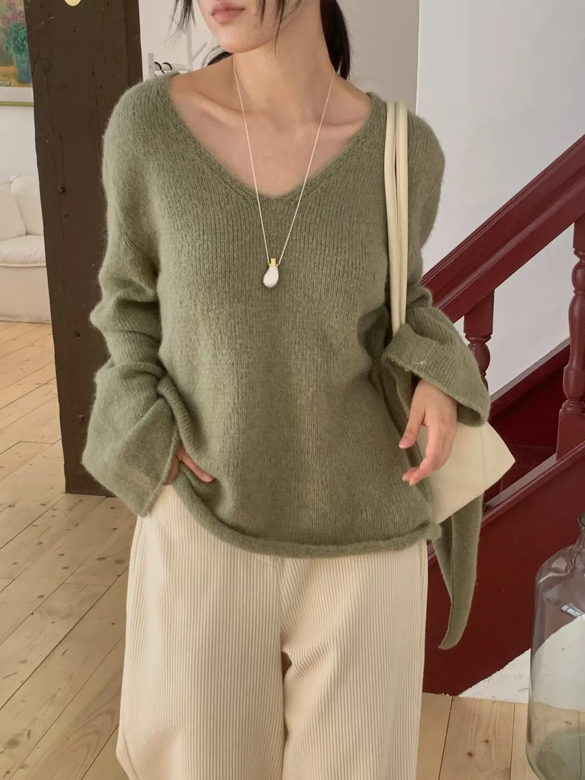 C6高檔字母家附披肩V領針織上衣