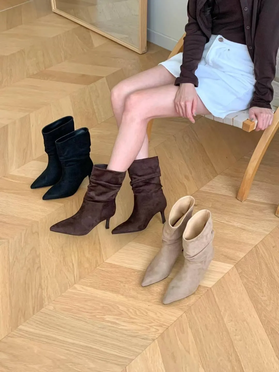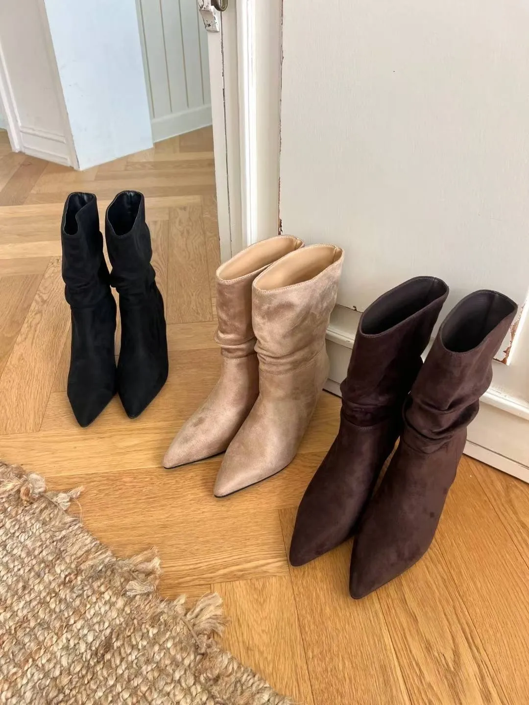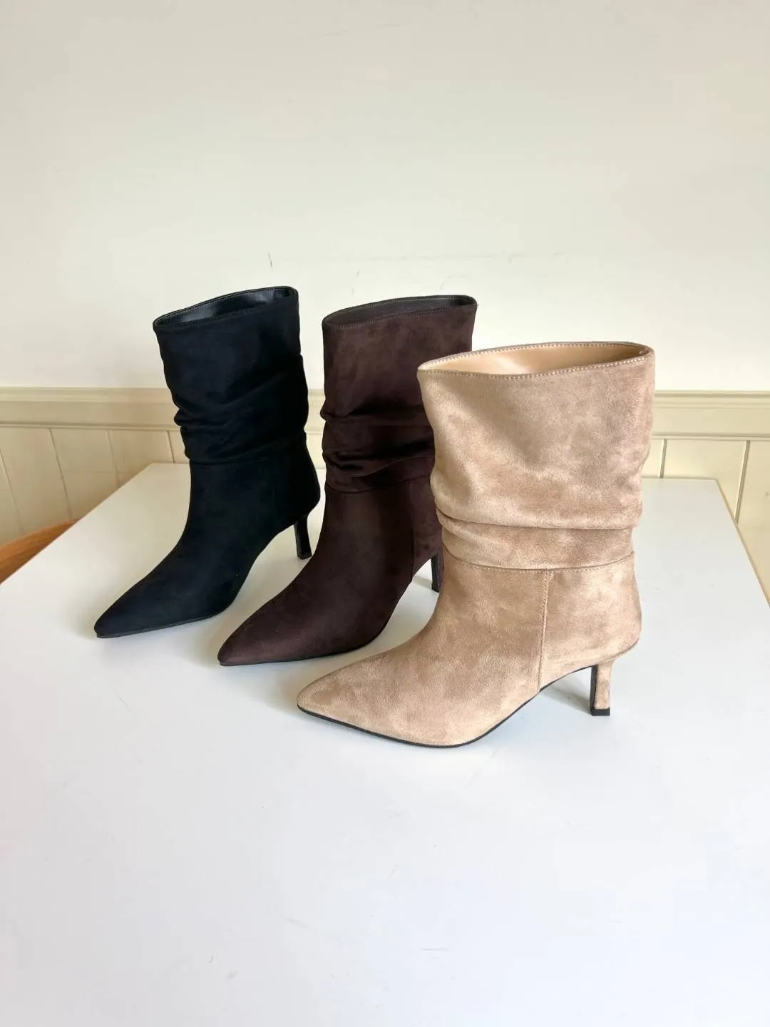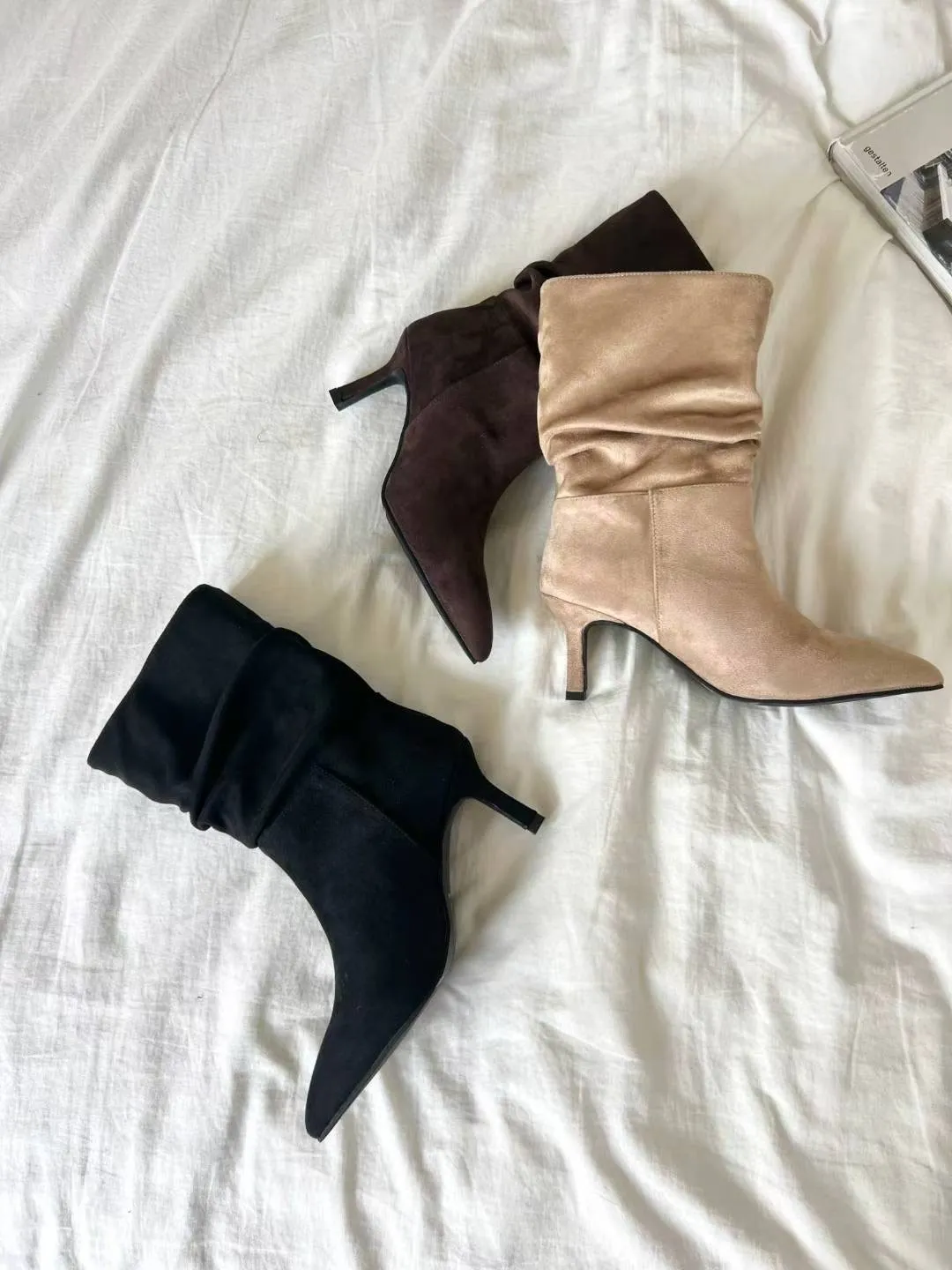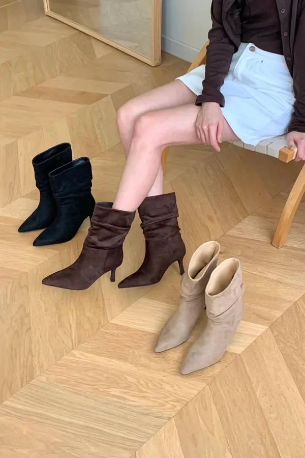 A5 1029抓褶麂皮尖頭短靴3色(230-250)7917