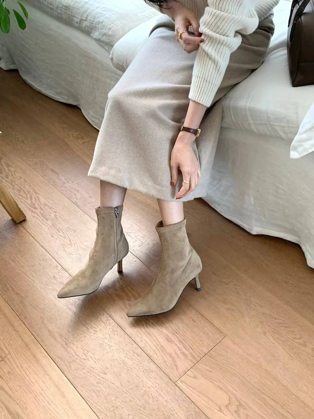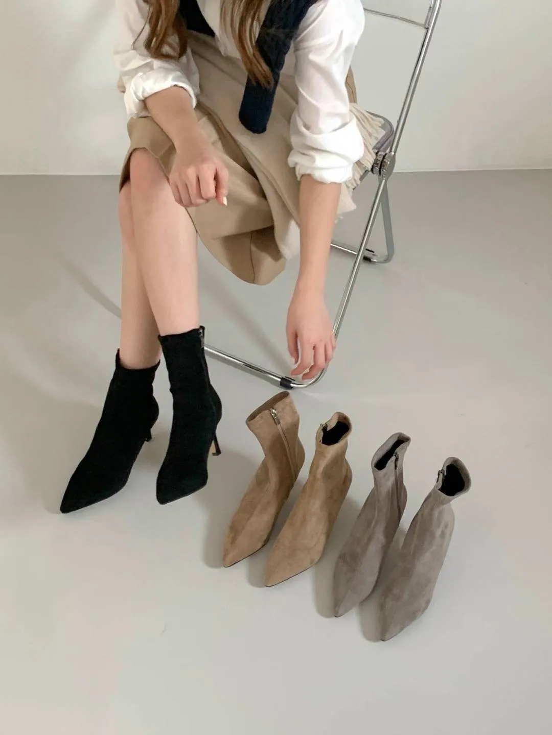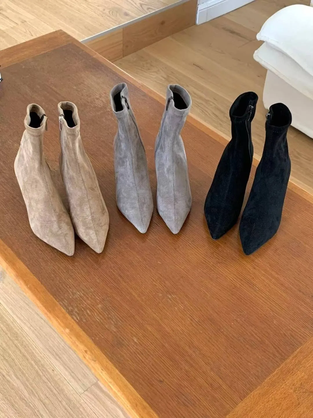A8 1029車線麂皮尖頭短靴3色(230-250)7535