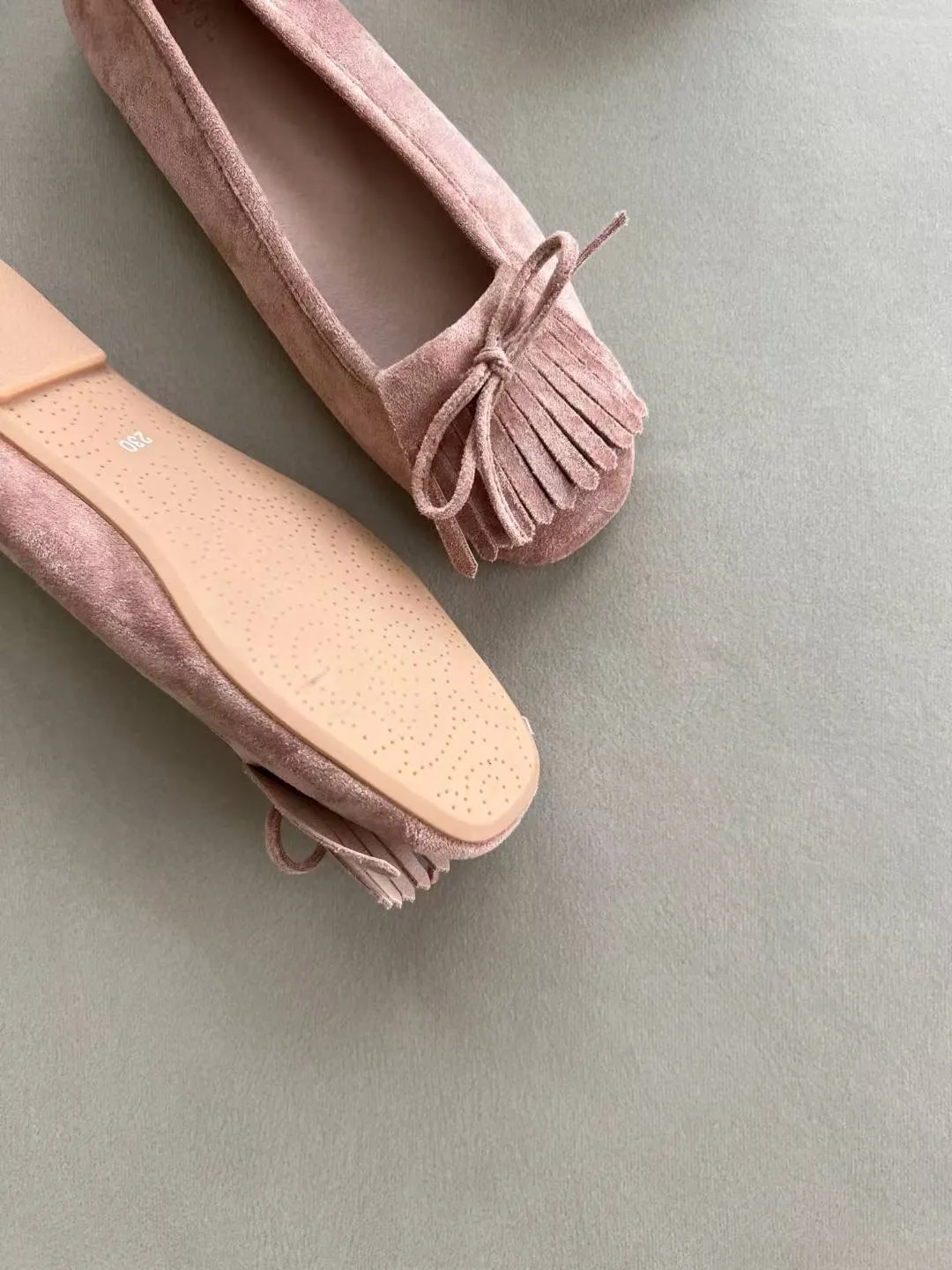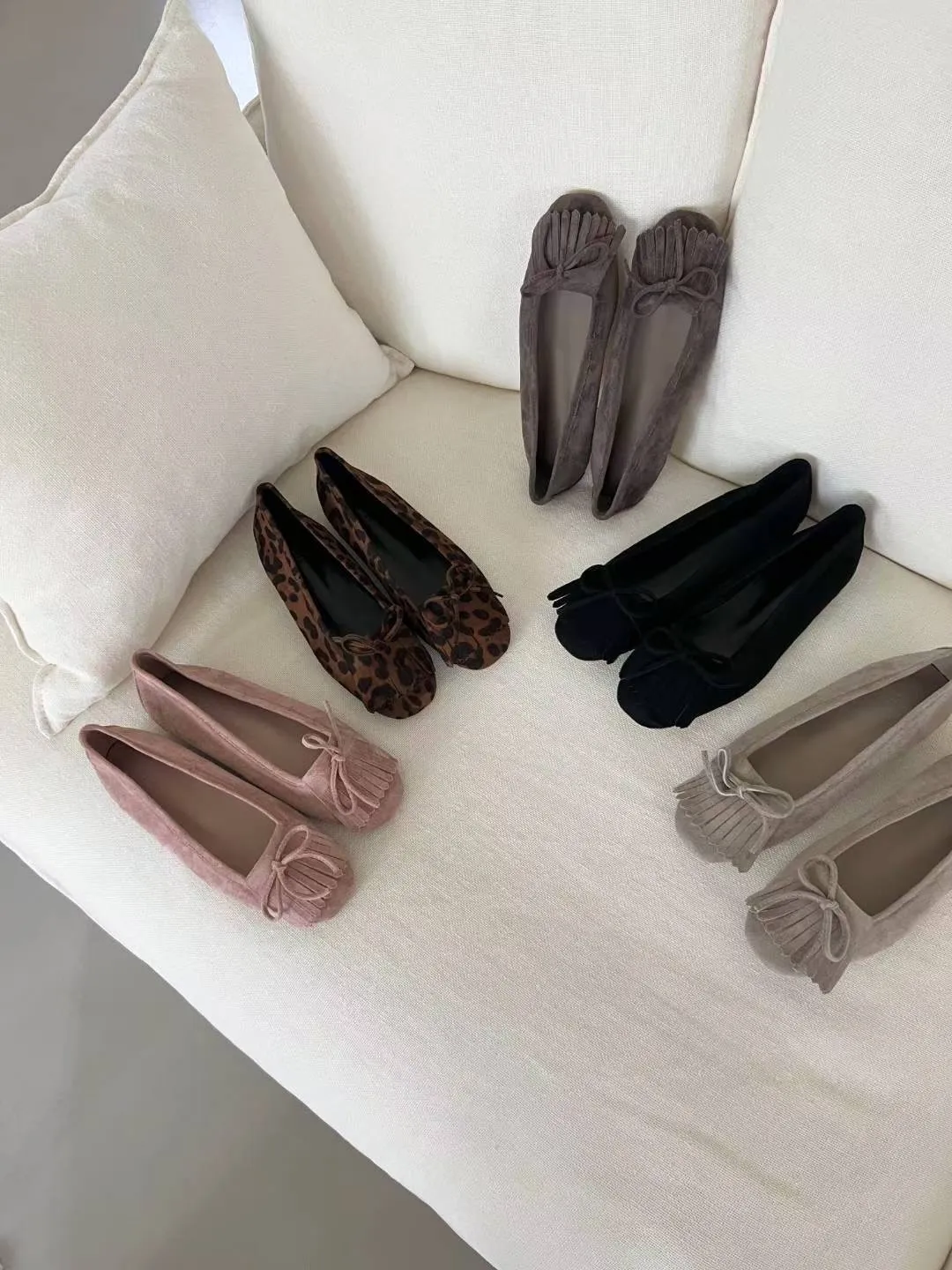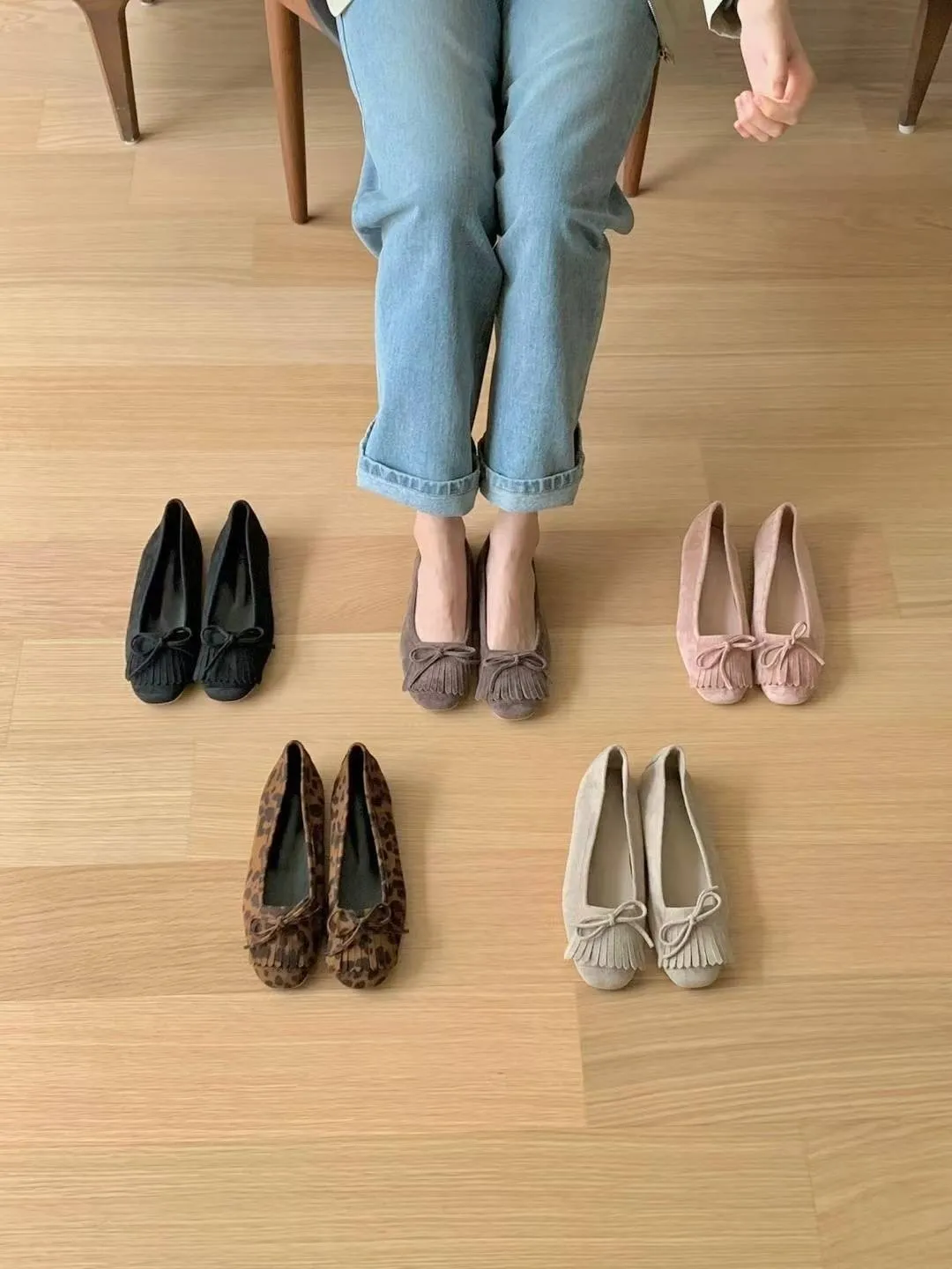 A13 1029蝴蝶結流蘇麂皮娃娃鞋(225-250)7705