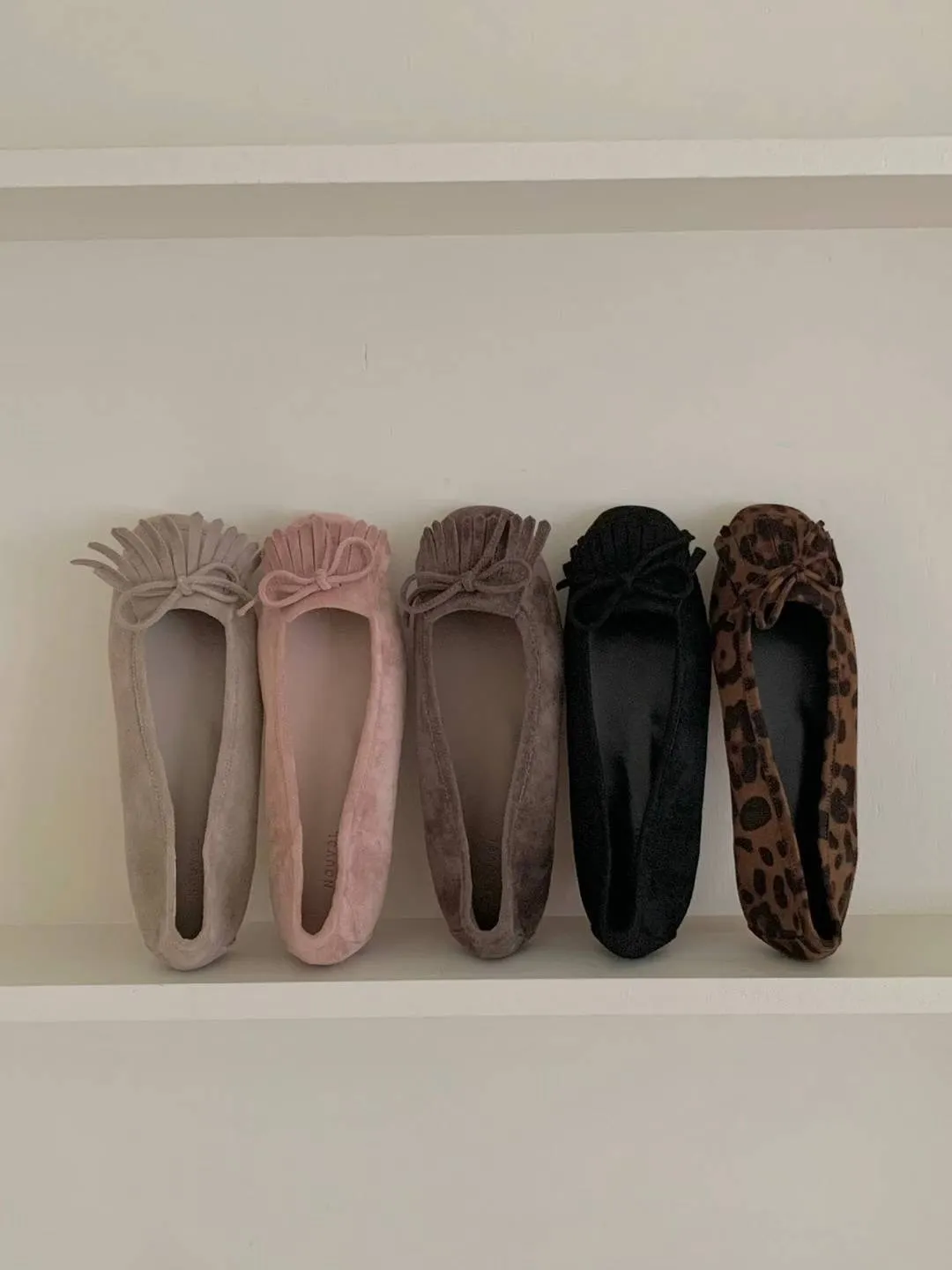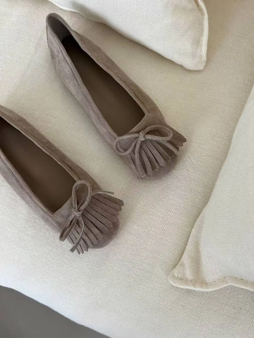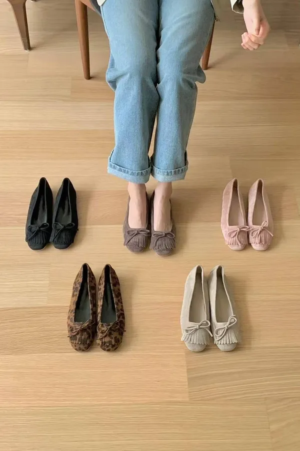 A13 1029蝴蝶結流蘇麂皮娃娃鞋(225-250)7705