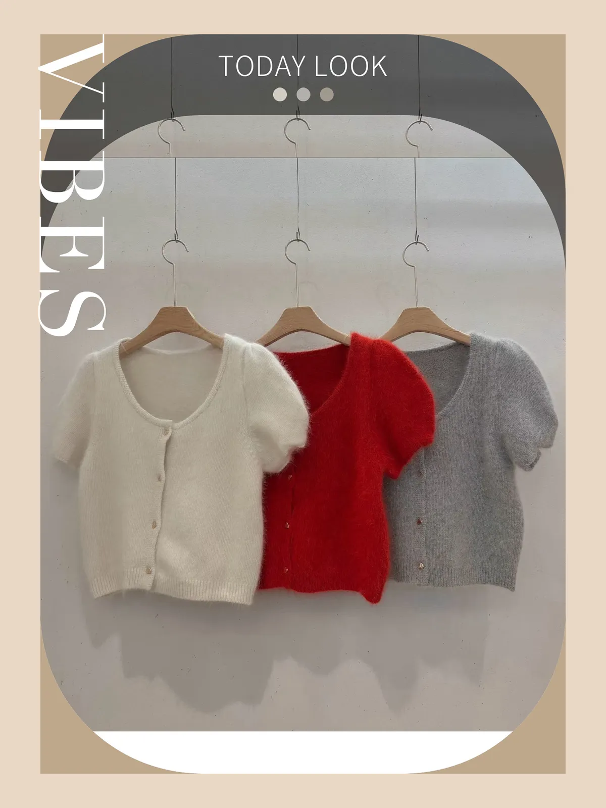 A15 1029網紅愛店排釦圓領羊毛混馬海毛針織毛衣