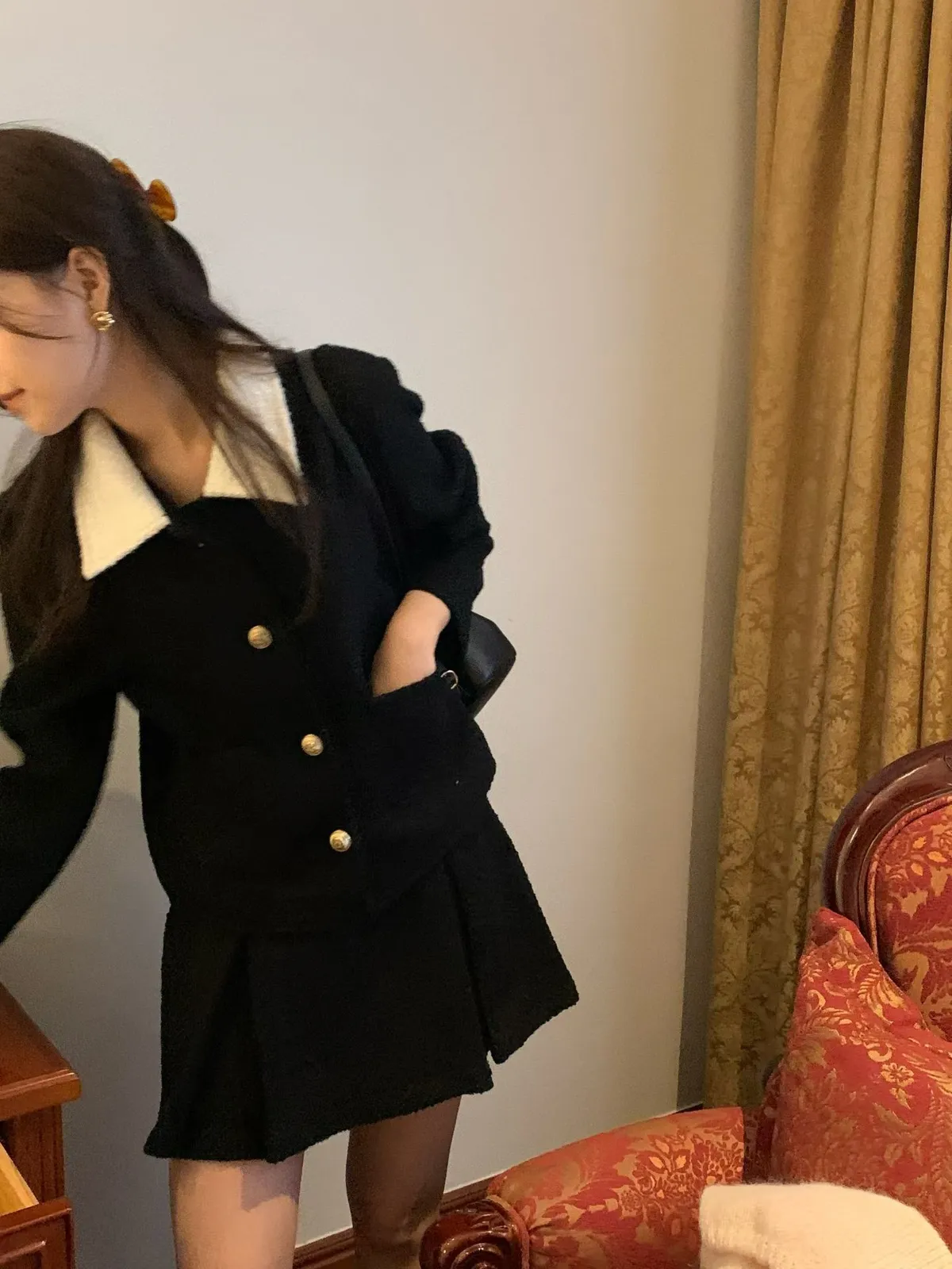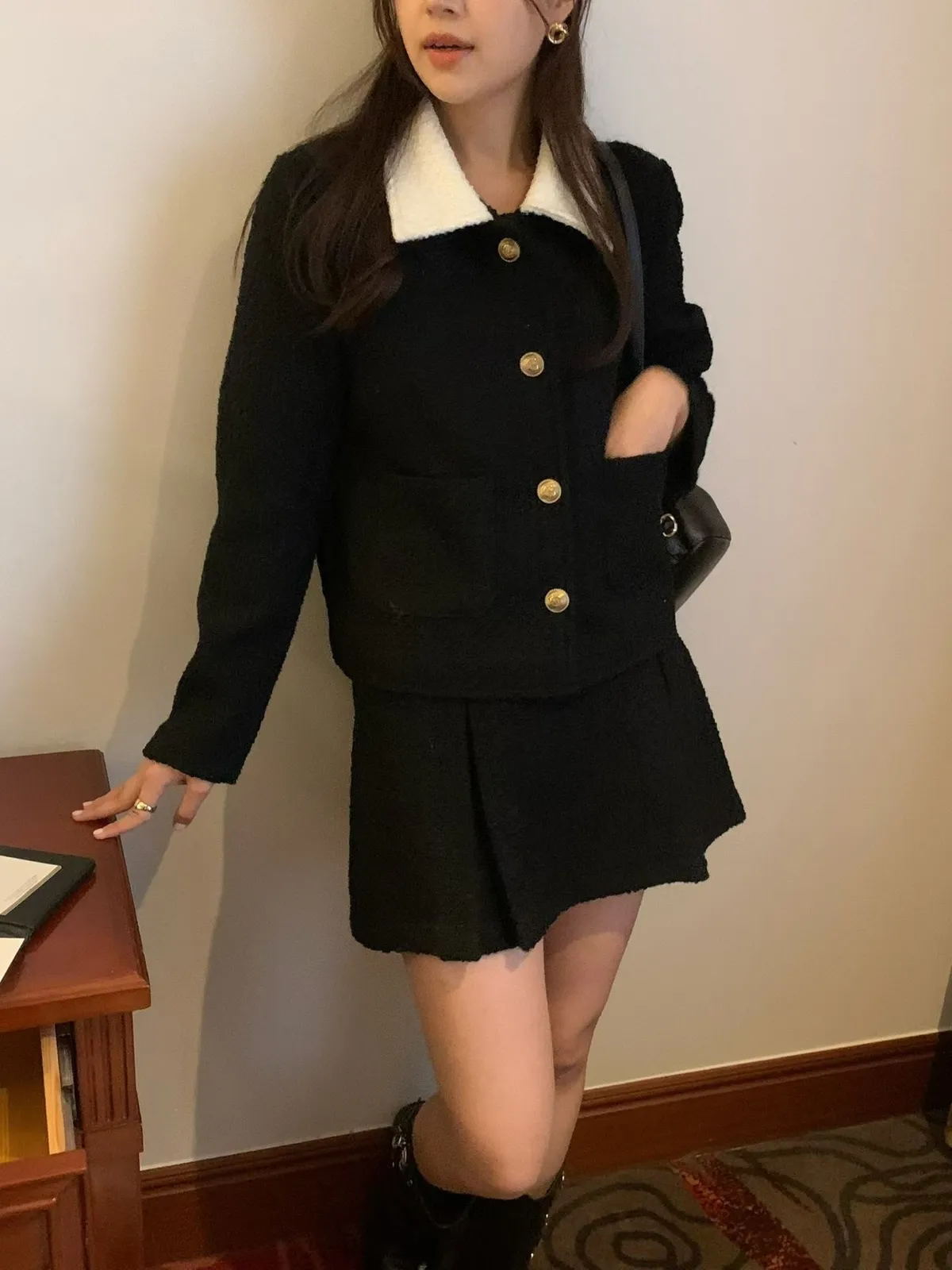 A23 1029網紅愛店立體壓褶A字小香短裙