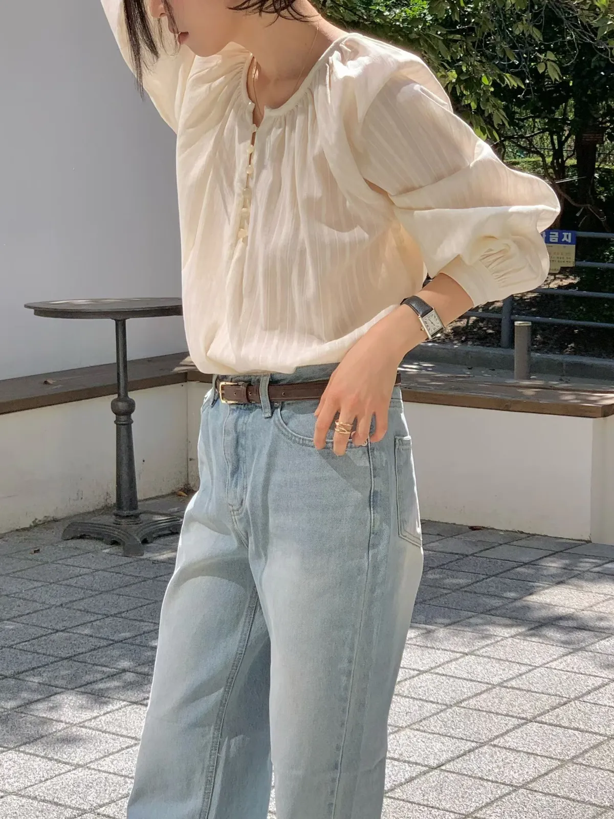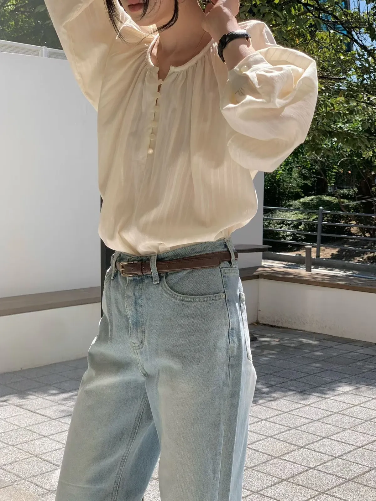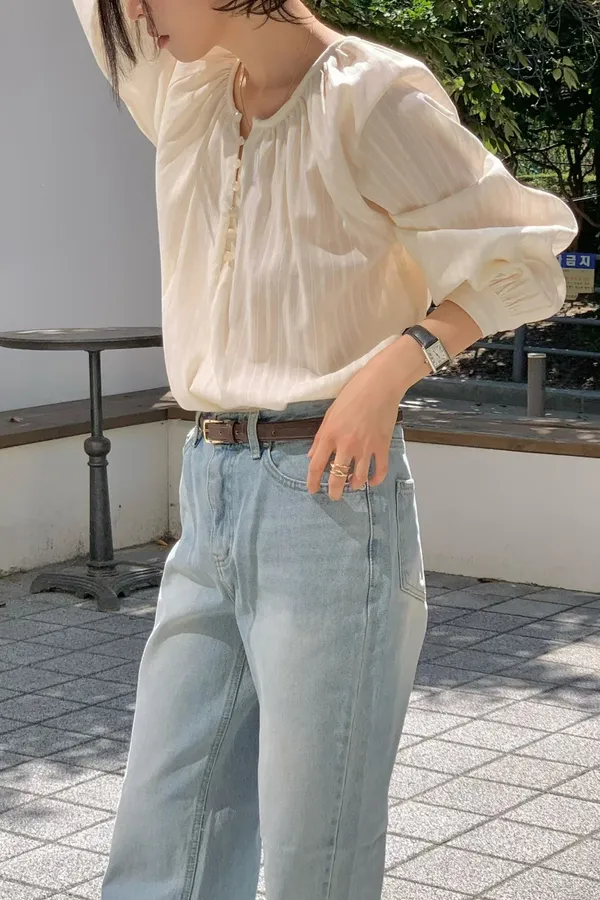 A27 1029網紅愛店點點直紋排釦襯衫