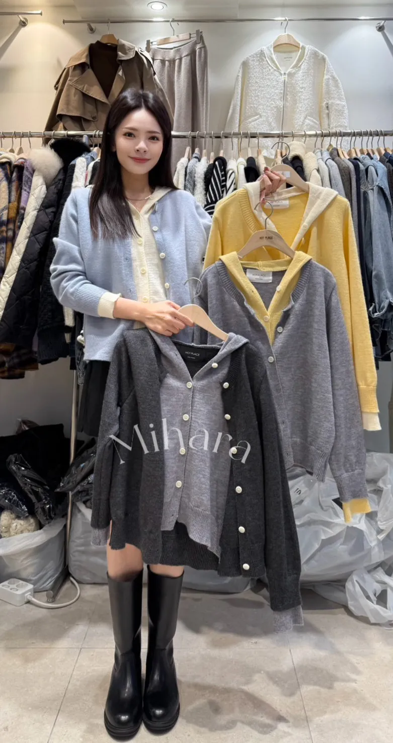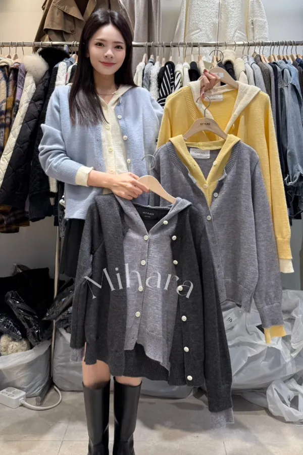 A36 1030外套家假兩件式撞色排釦連帽針織上衣