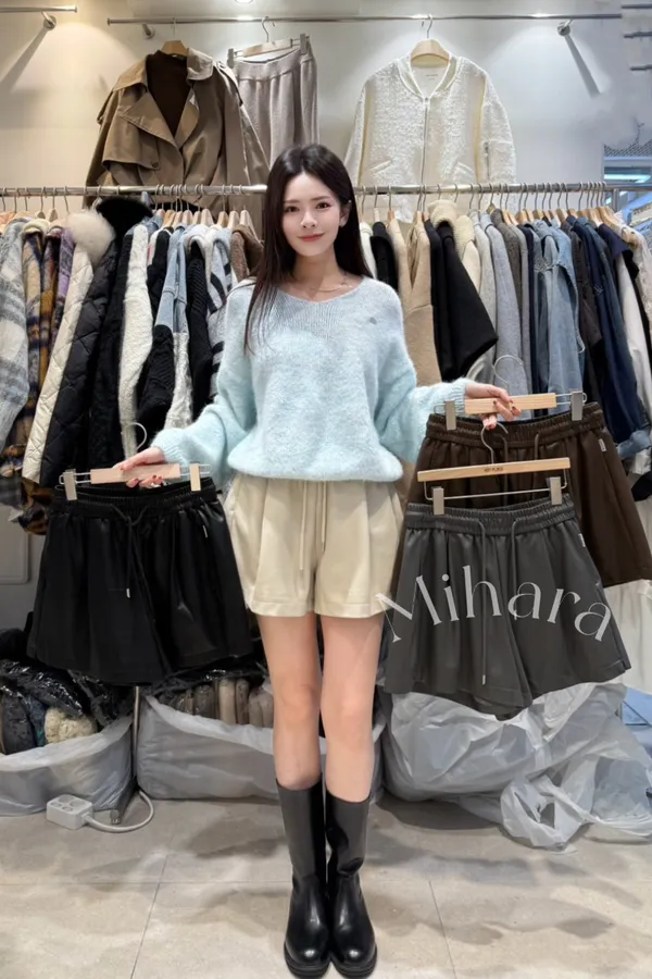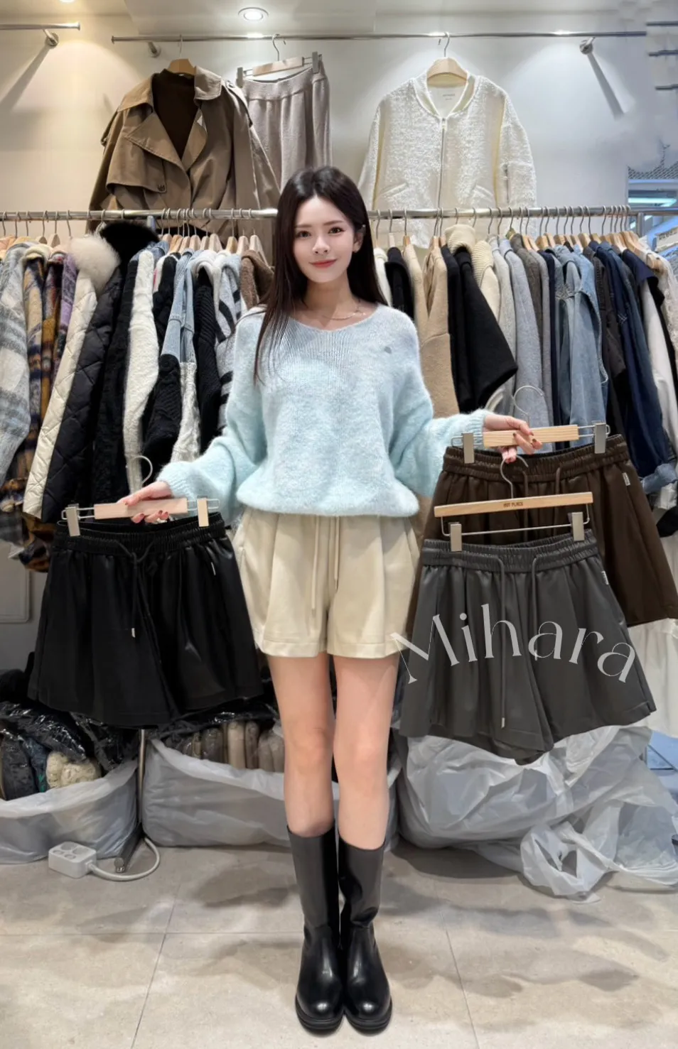 A38 1030外套家側開衩抽繩綁帶A字皮短褲