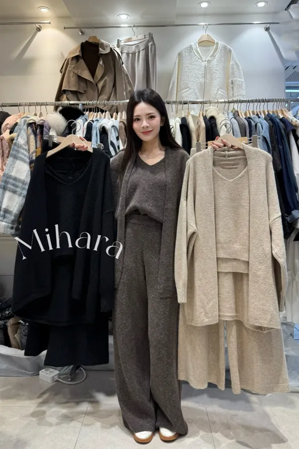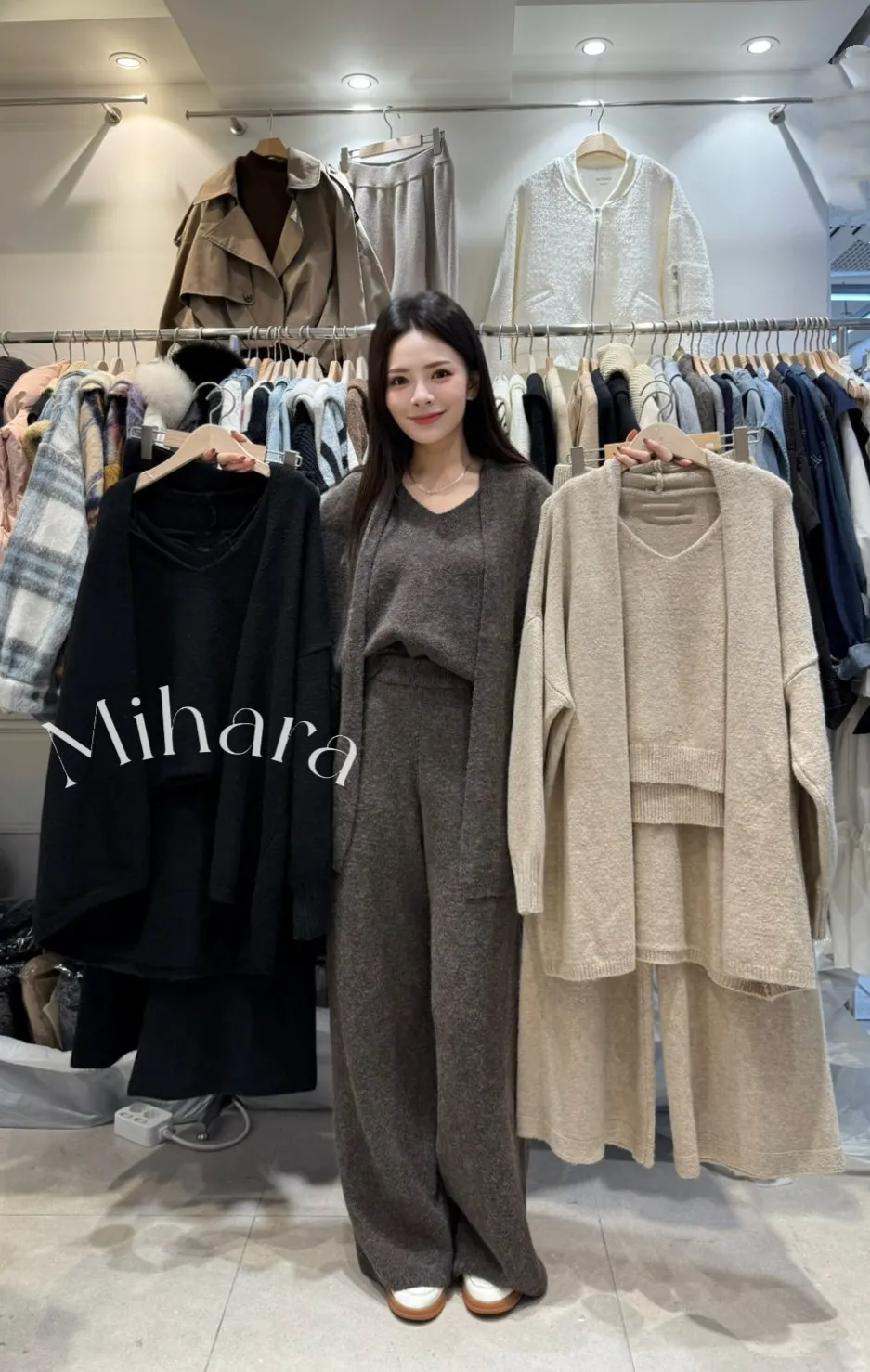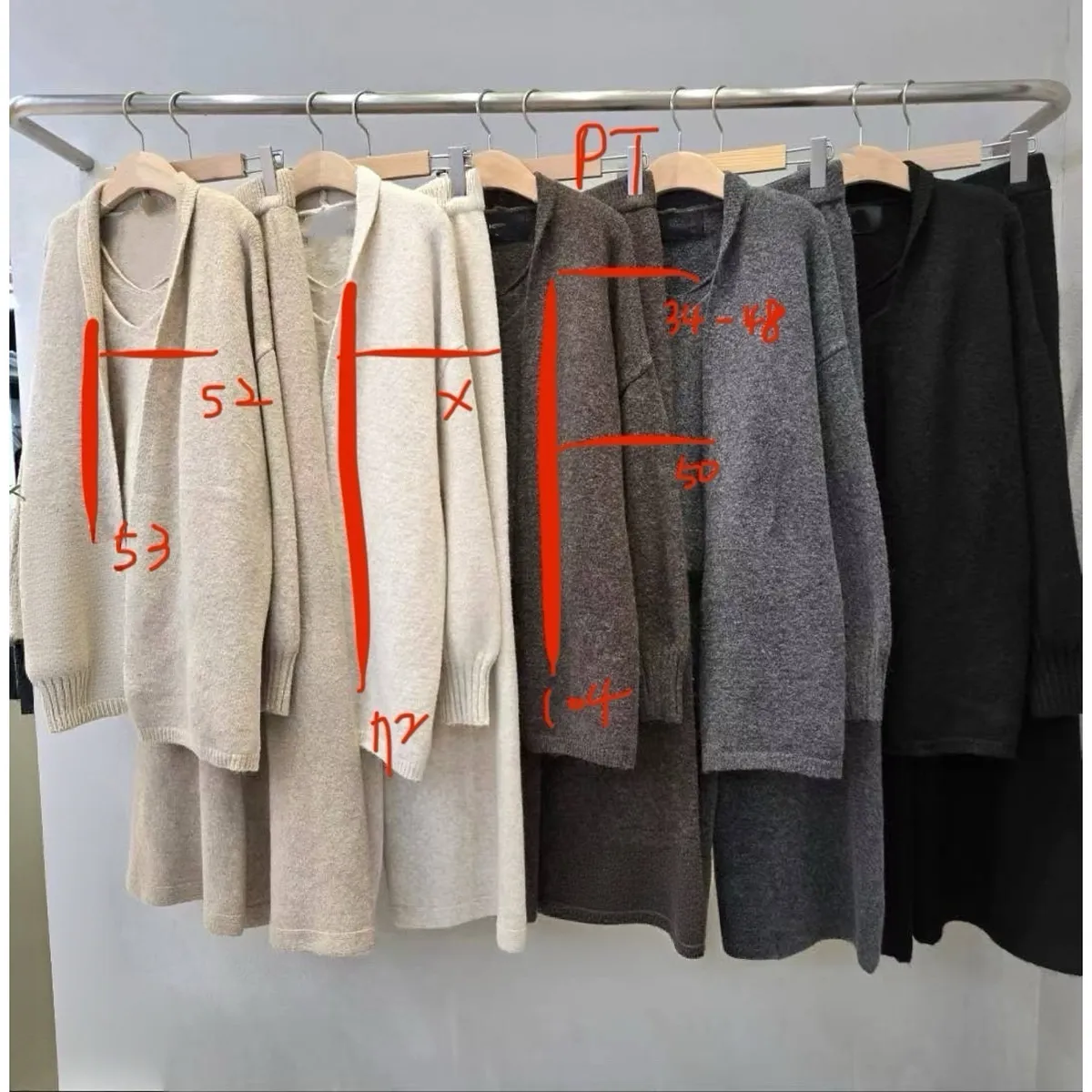 A46 1030外套家開襟針織罩衫+寬肩帶V領針織背心+針織直筒褲(SET)