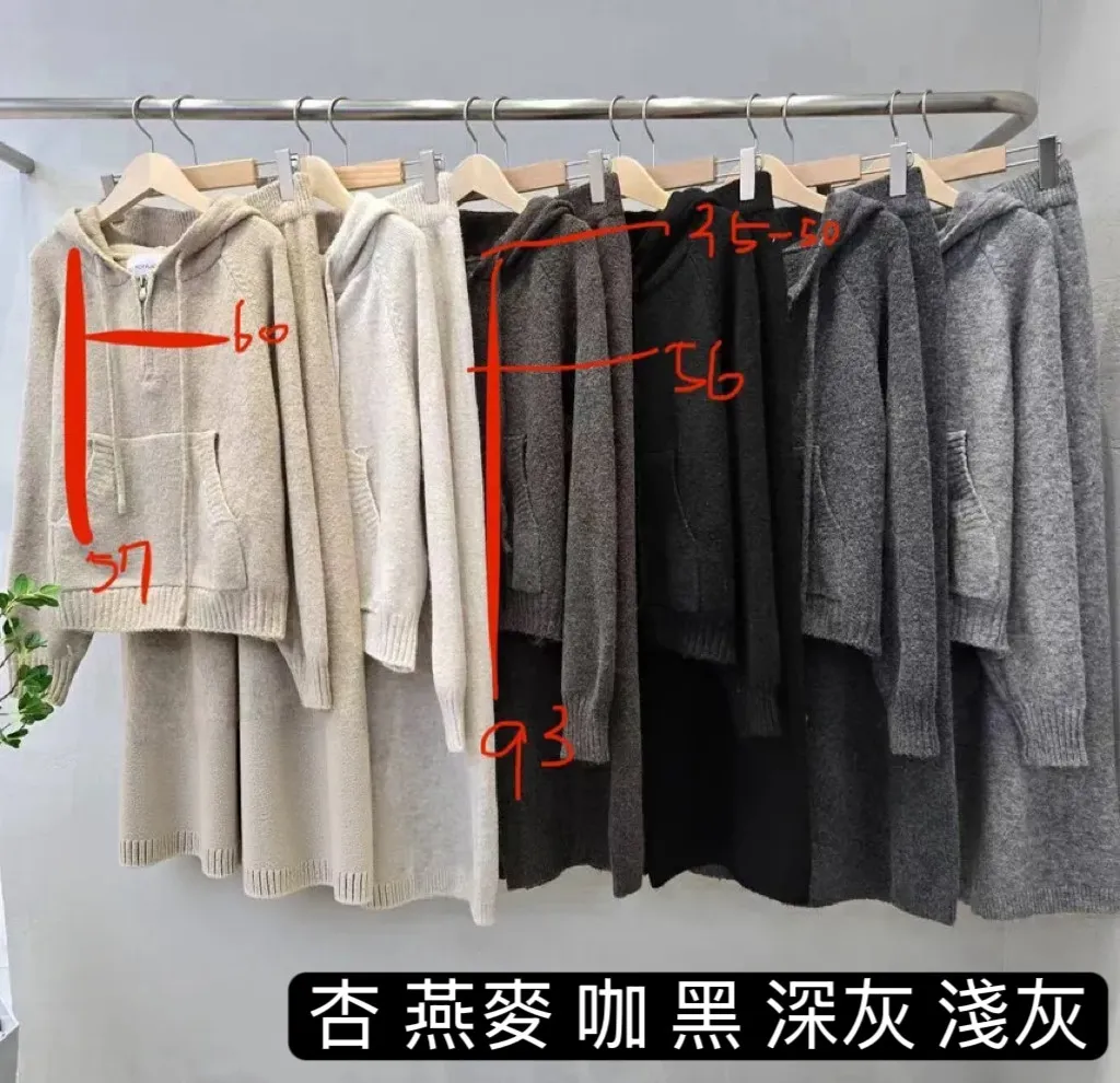 A49 1030外套家抽繩針織帽T+針織寬褲(SET)