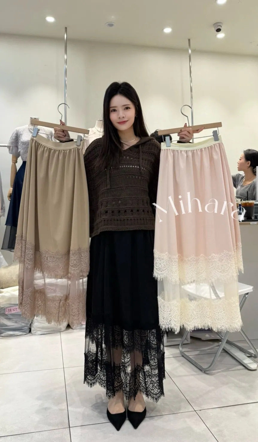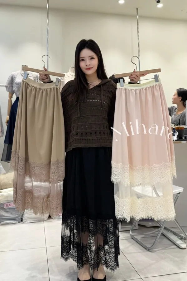 A4 1102拼接雙層睫毛蕾絲半裙