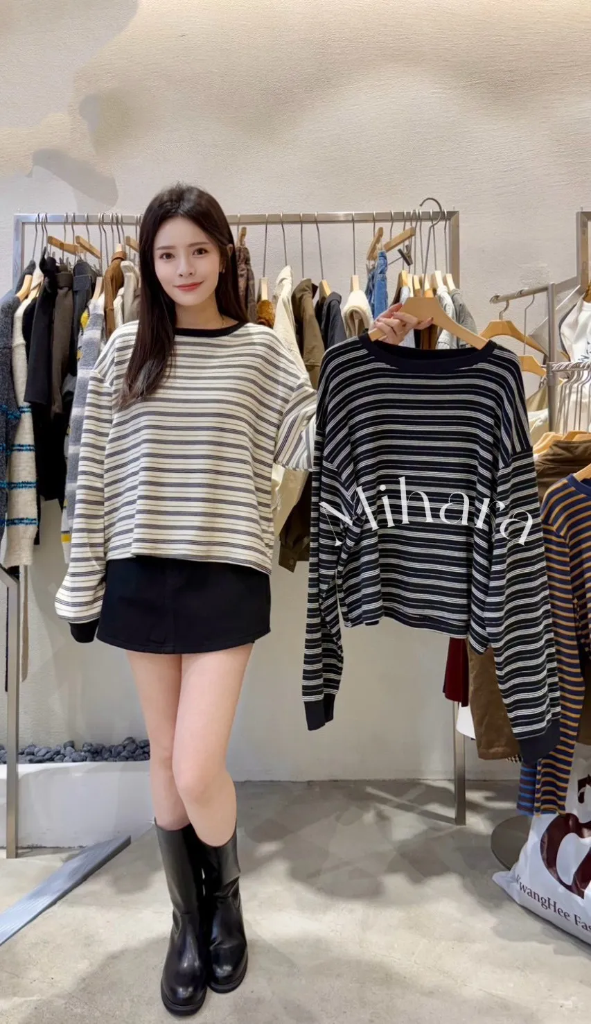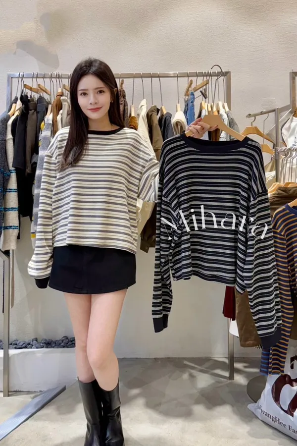 A35 1102橫條圓領棉質T恤