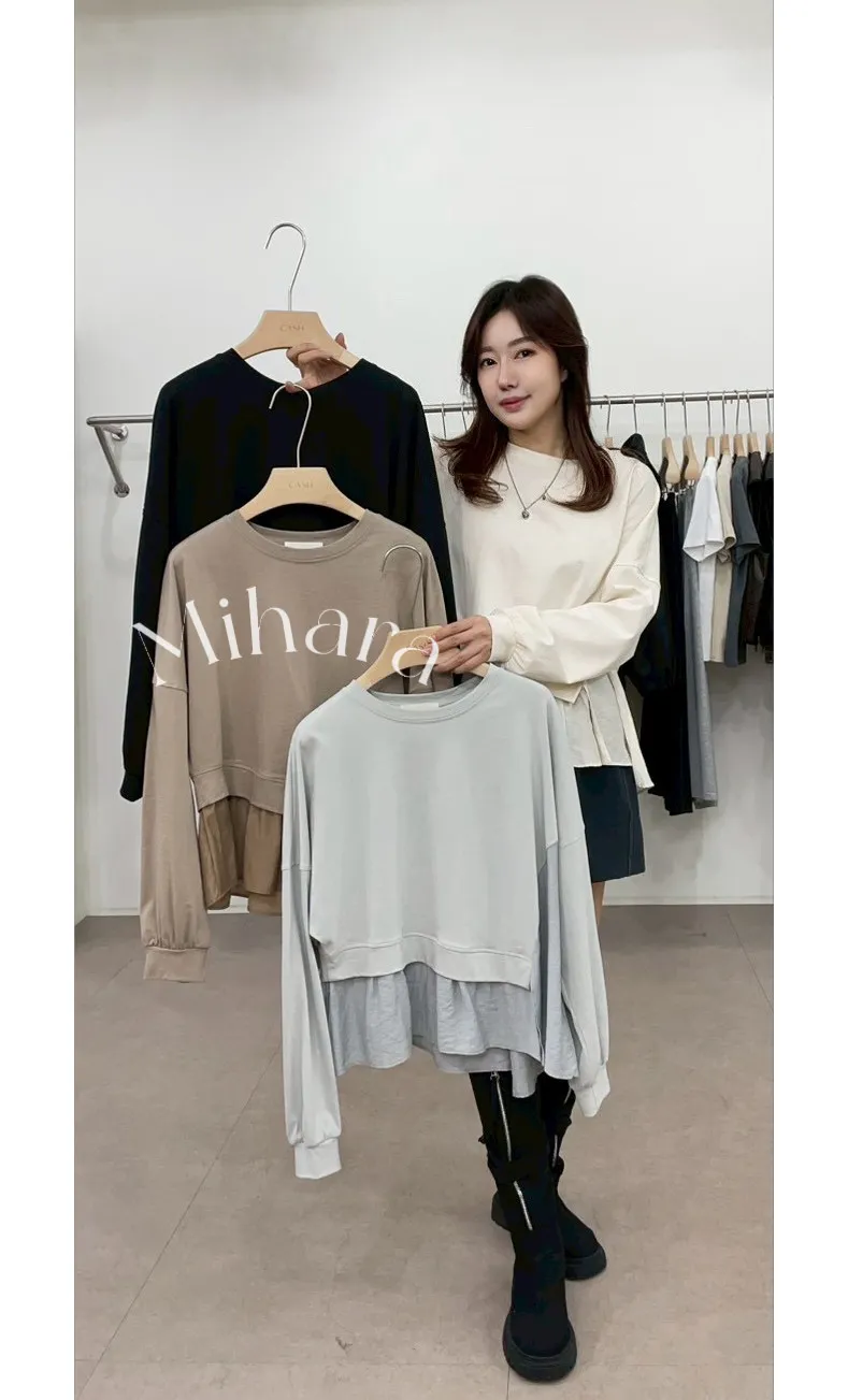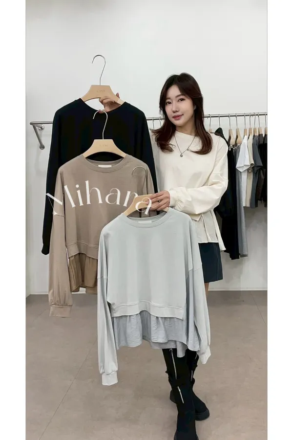 A1 1103錢錢歐膩家拼接人造絲開衩圓領純棉上衣