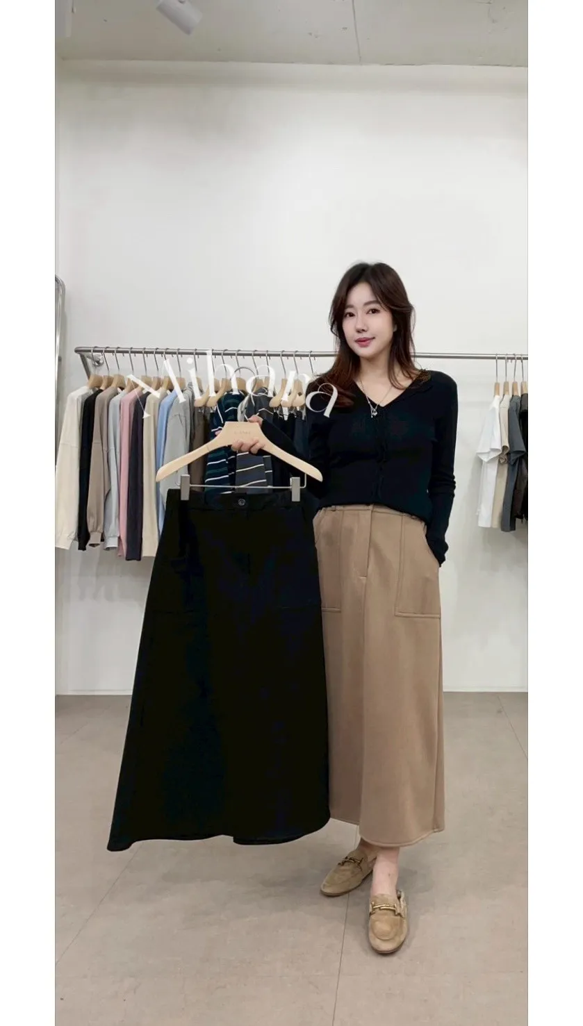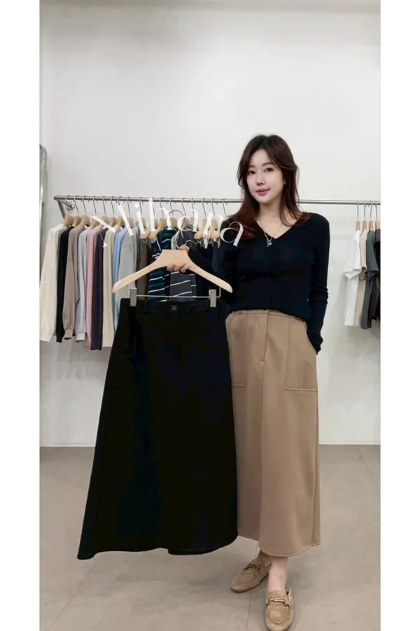 A9 1103錢錢歐膩家後開衩A字麂皮半裙