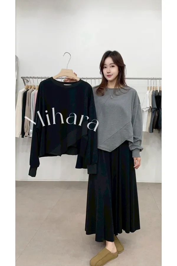 A10 1103錢錢歐膩家斜車線不規則下擺圓領上衣