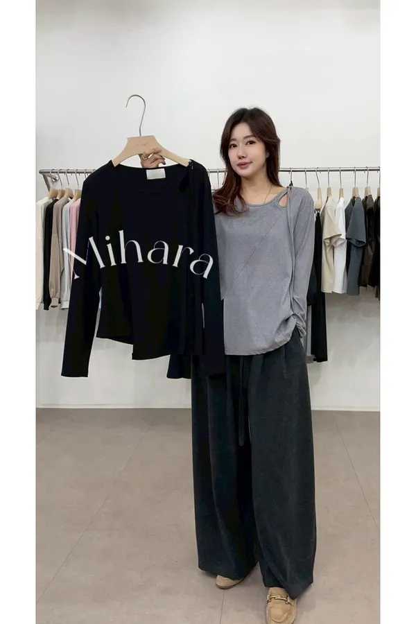 A16 1103錢錢歐膩家開衩綁帶挖洞圓領上衣