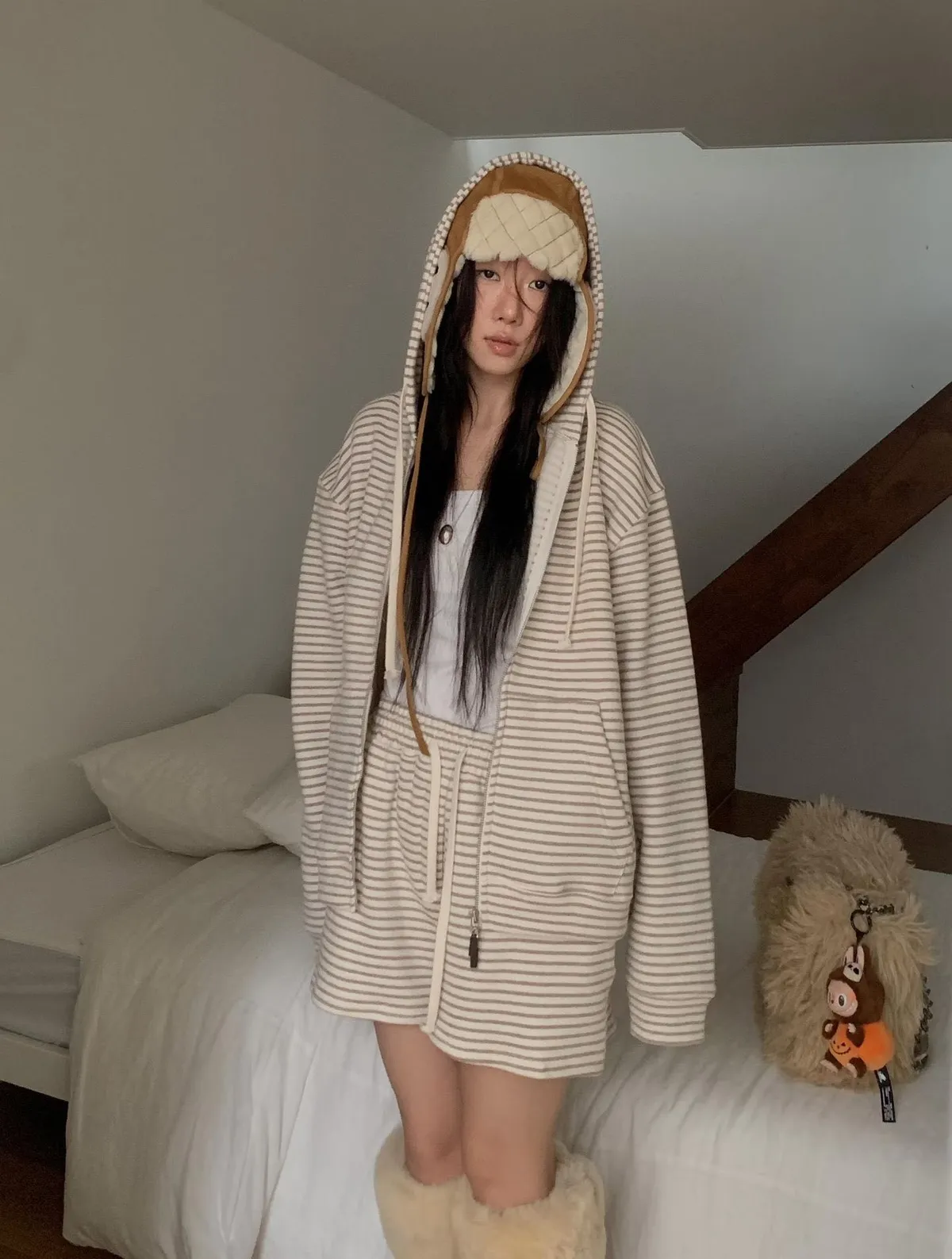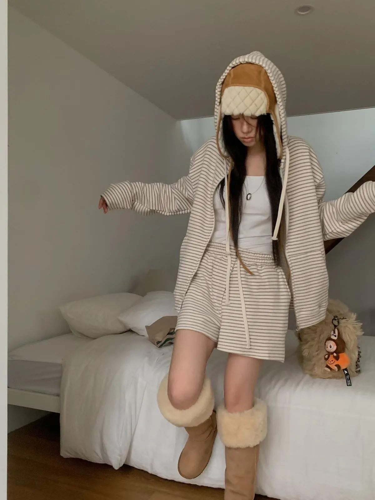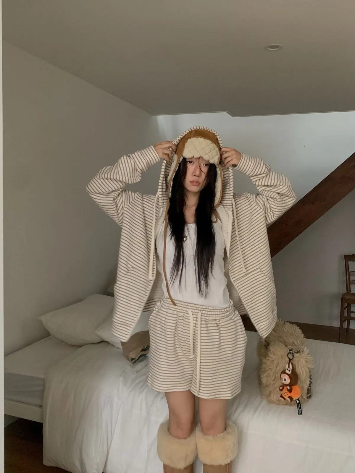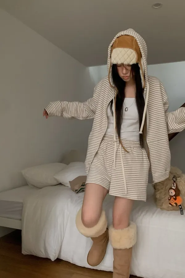 C39字母家條紋棉質短褲