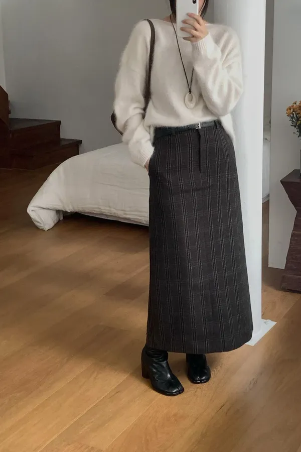 腰S腰34臀45全長89cm,M腰36.5臀47.5 全長90cm (羊毛50,聚酯50%)