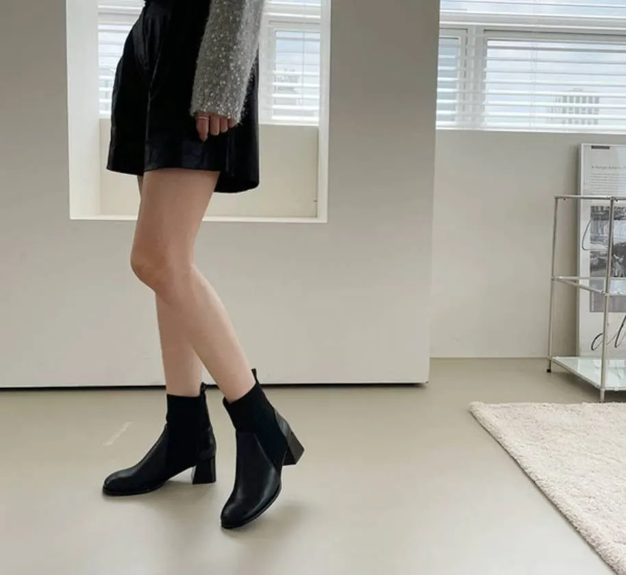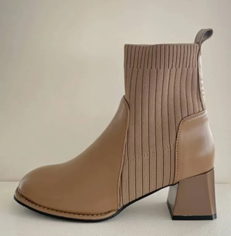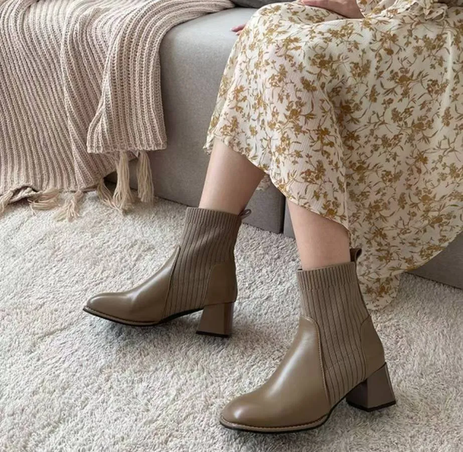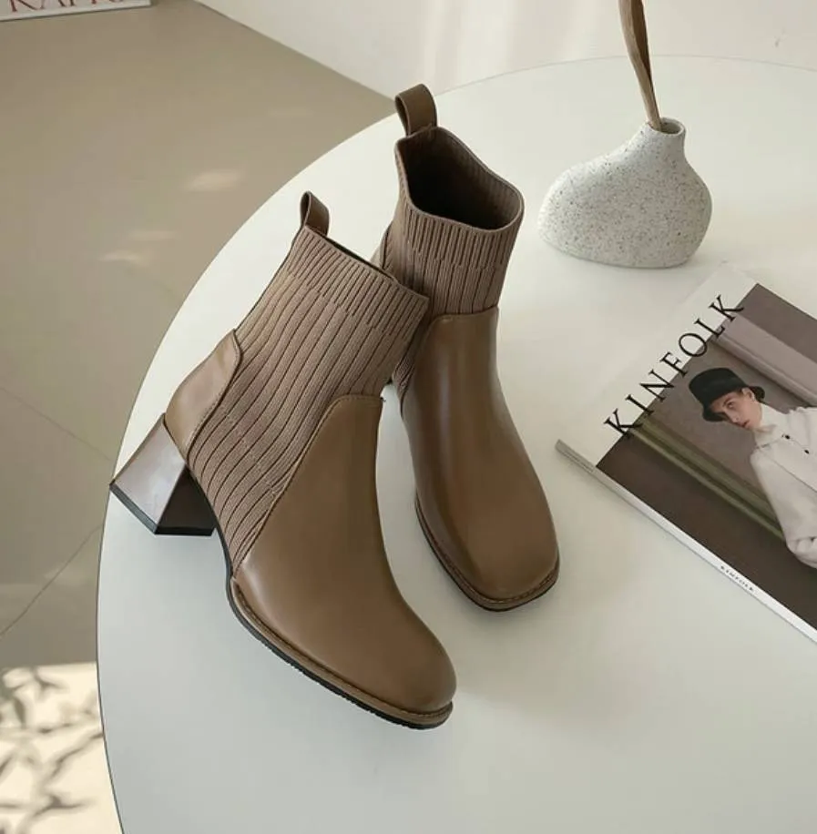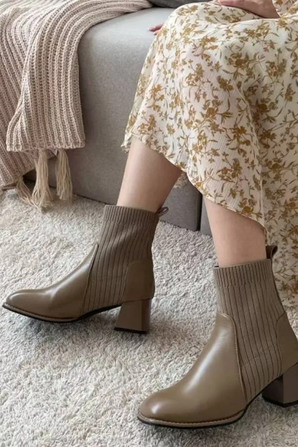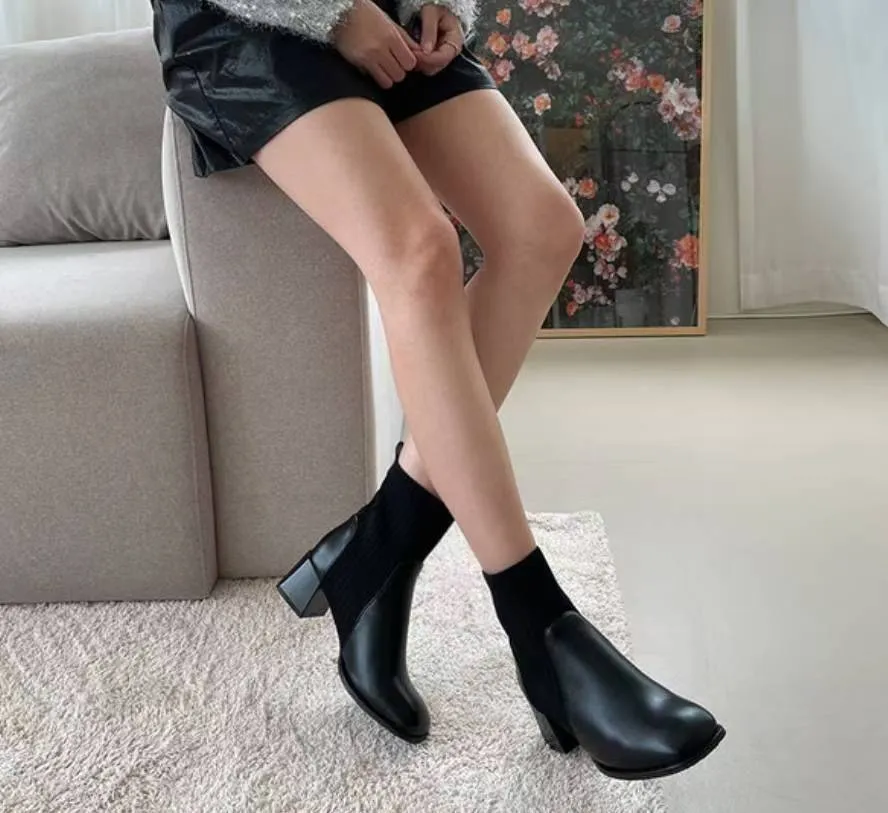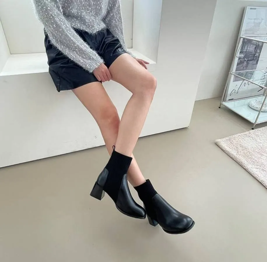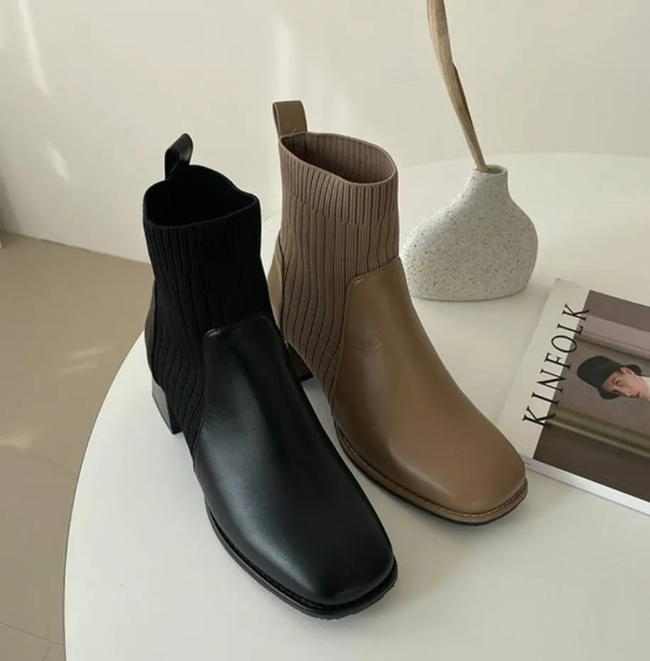 A46 1103拼接針織方頭短襪靴