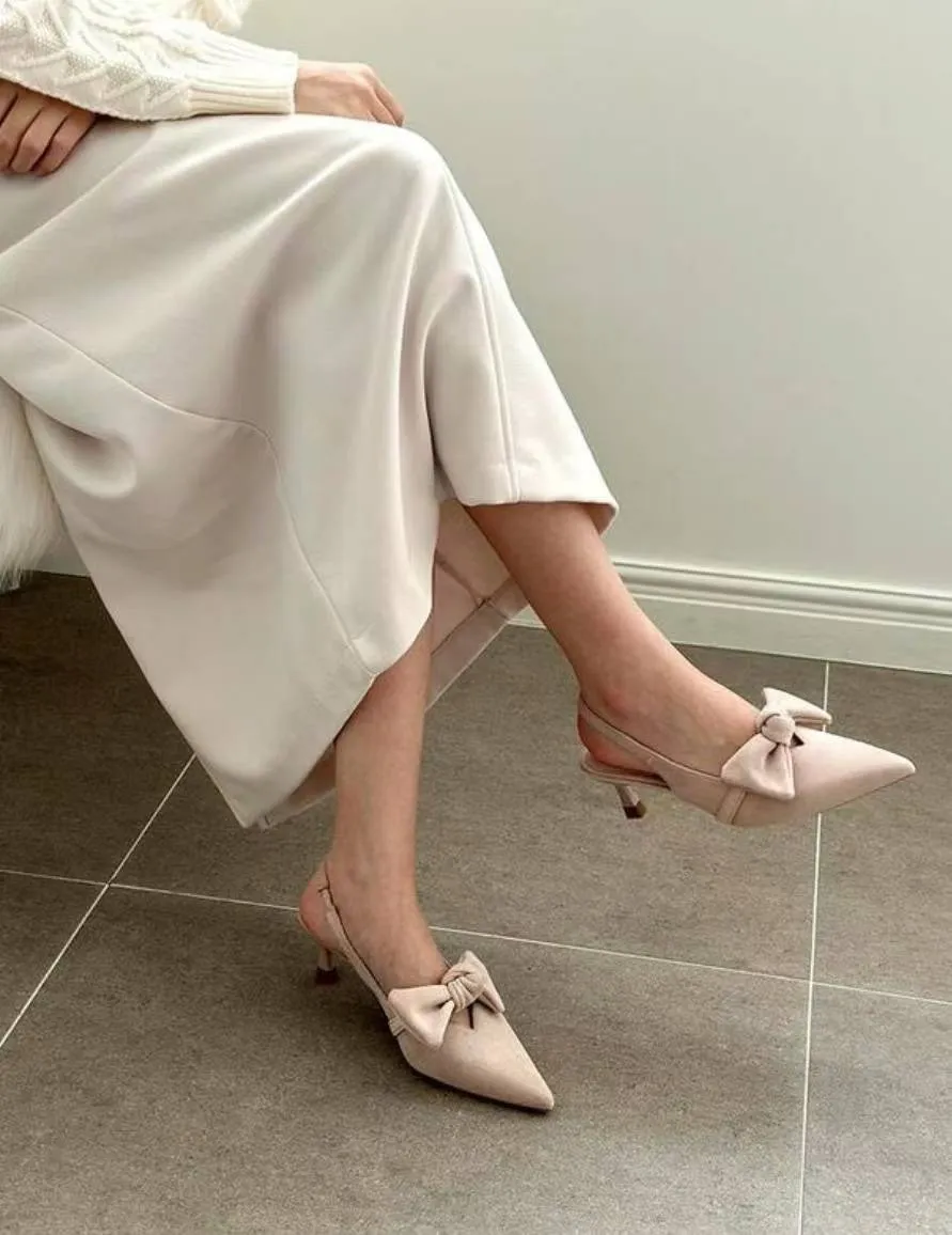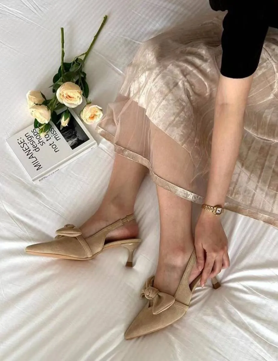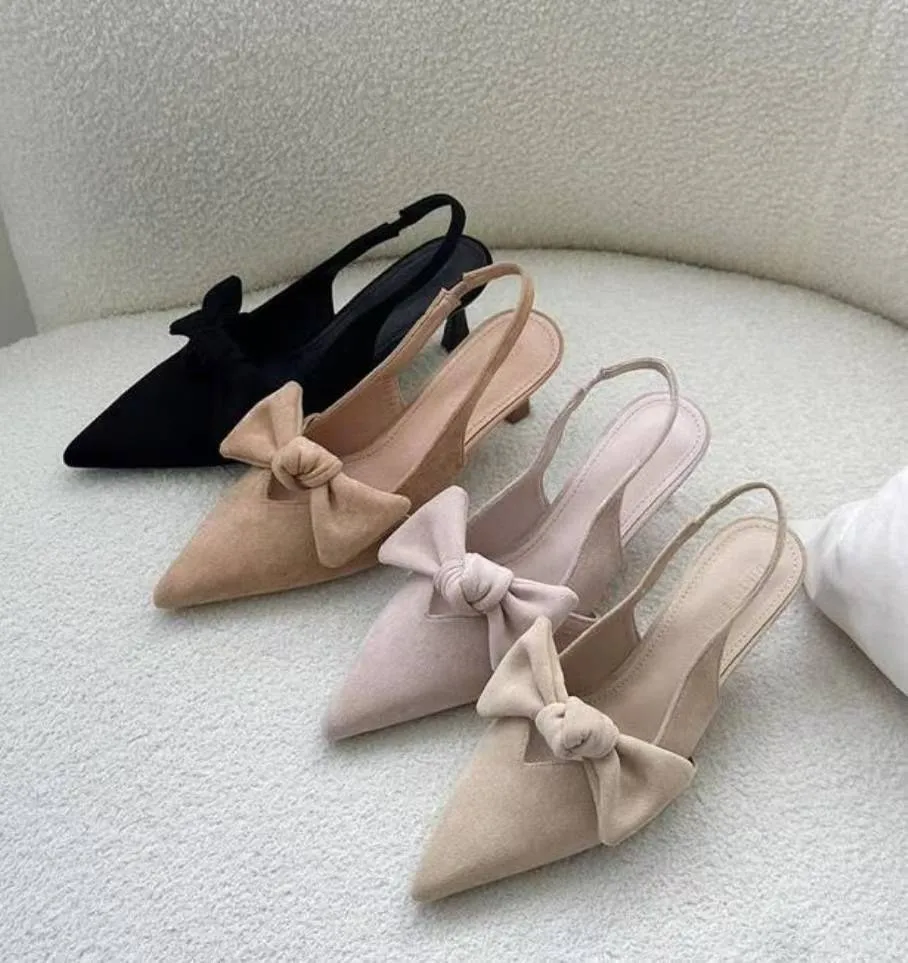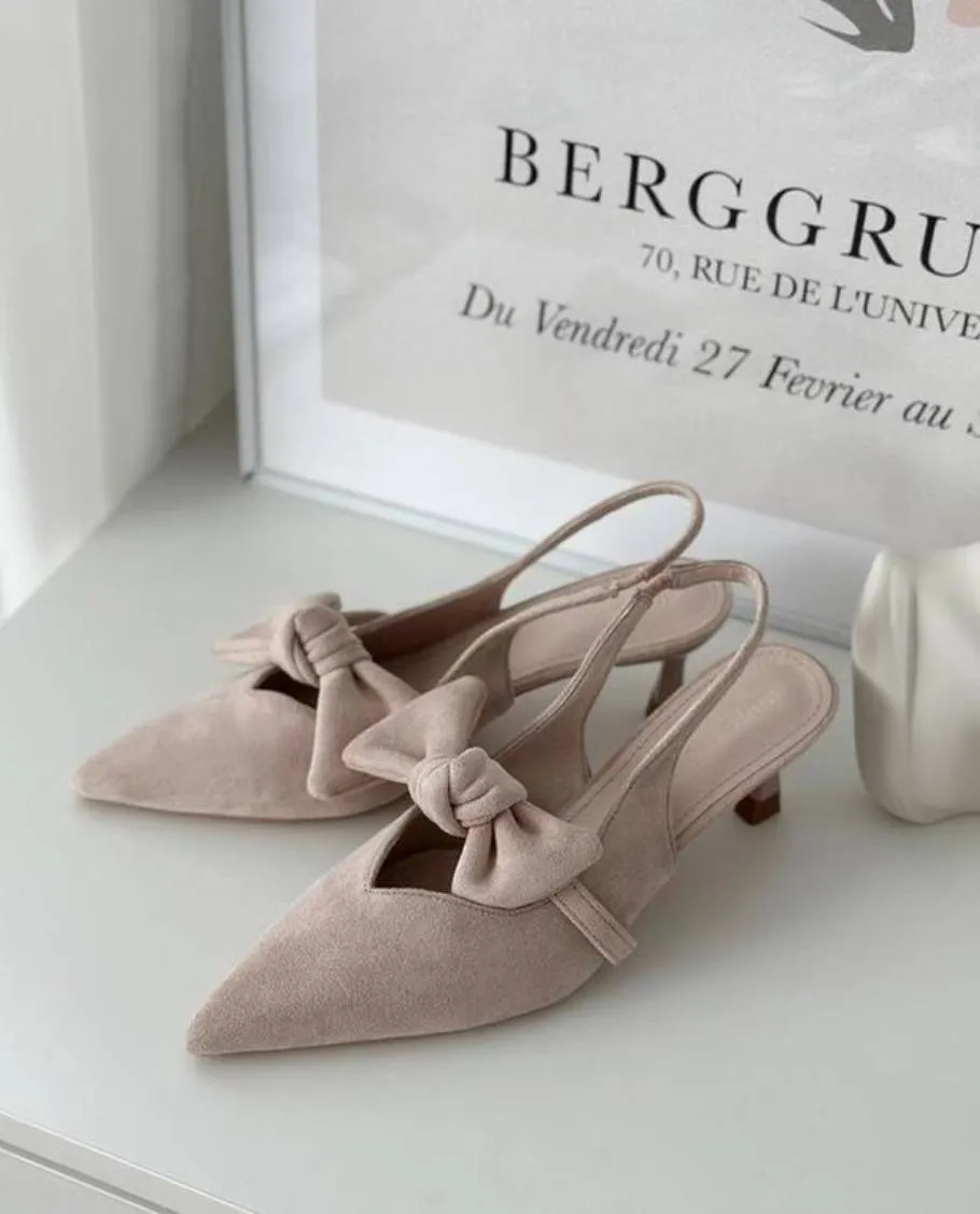 A50 1103蝴蝶結麂皮尖頭高跟鞋
