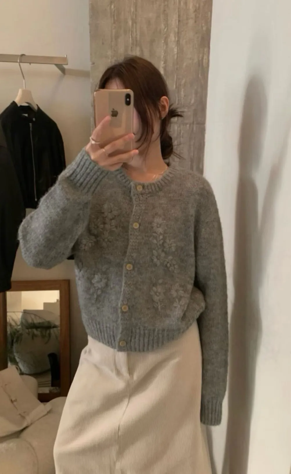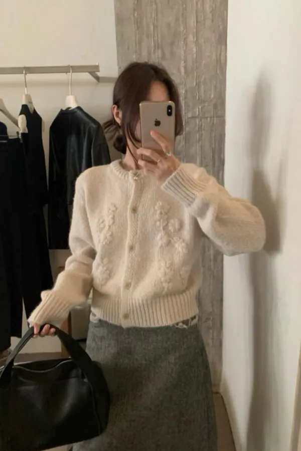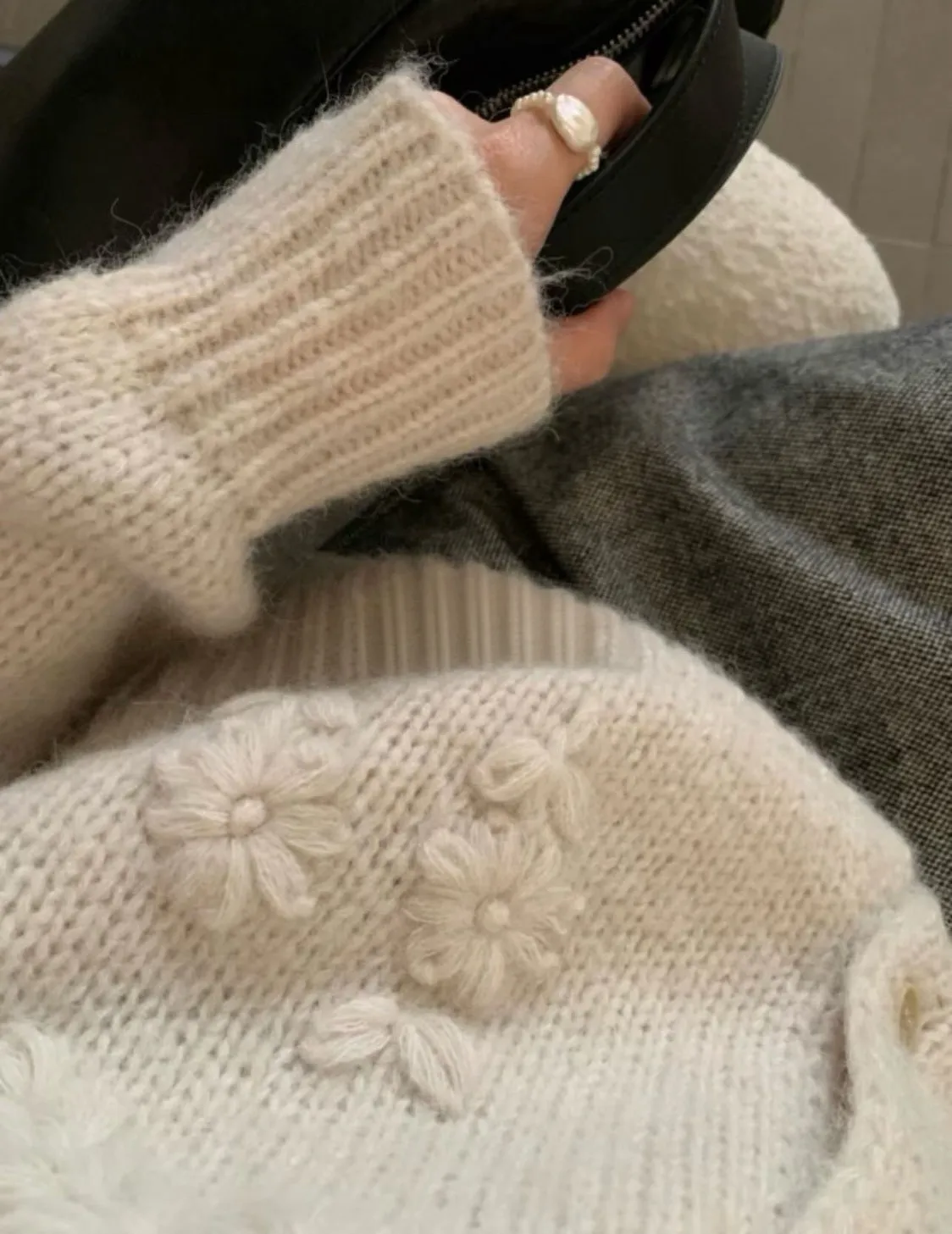 A57 1103泰迪外套家立體花花排釦圓領針織毛衣