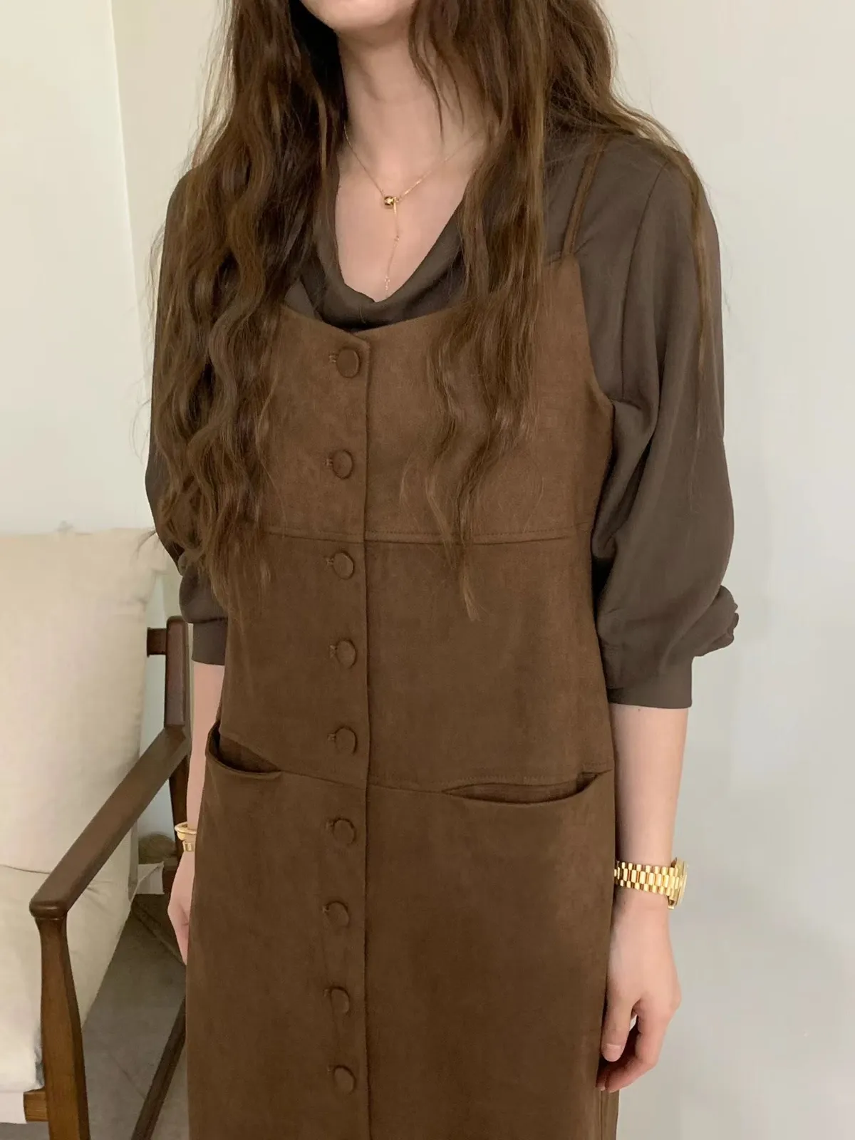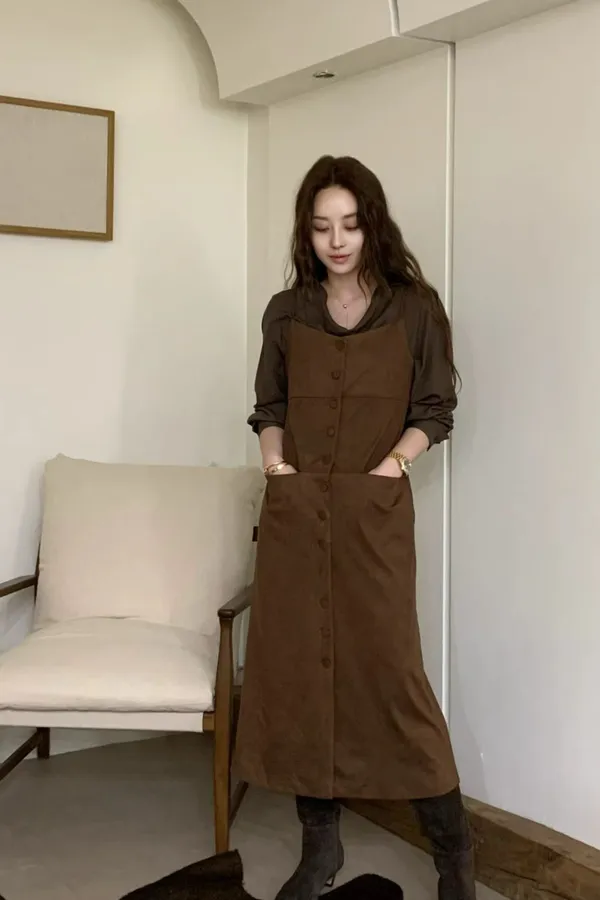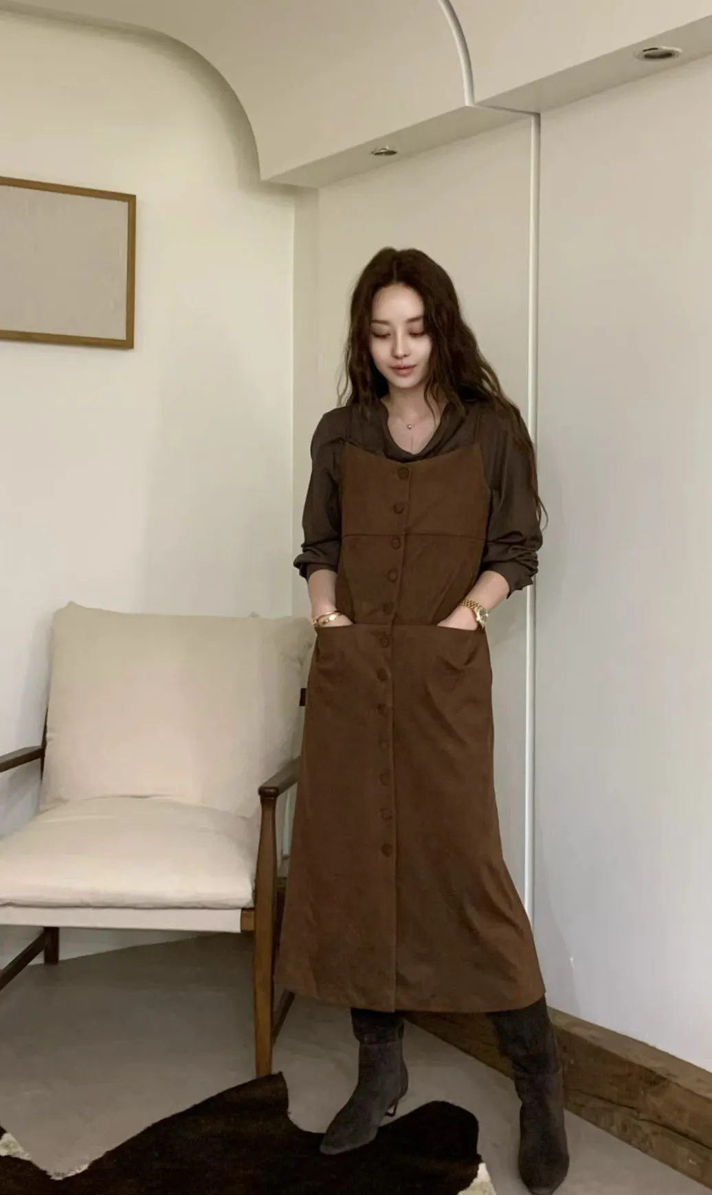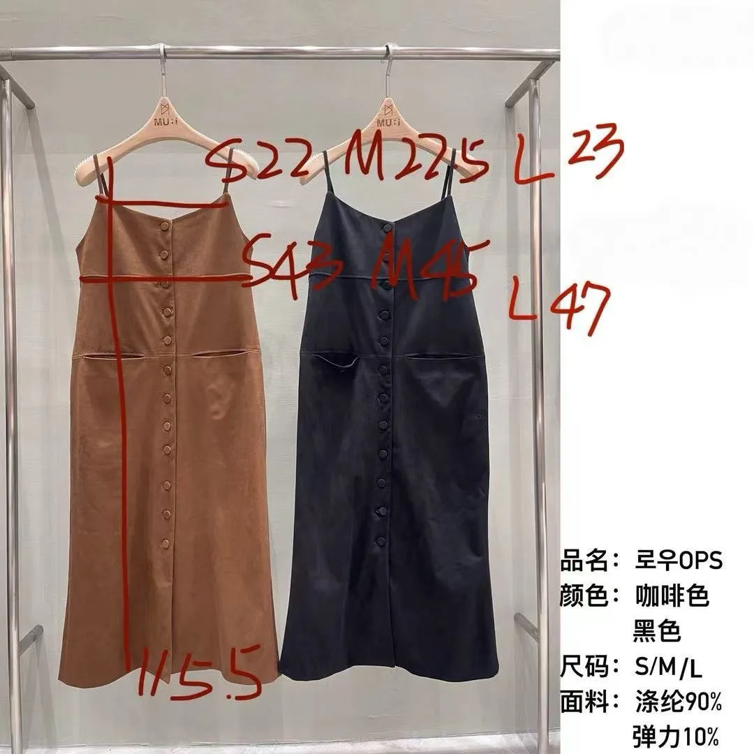 A36 1104氣質歐膩家前開衩排釦細肩帶背心洋裝