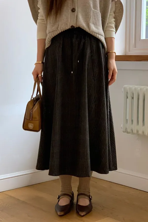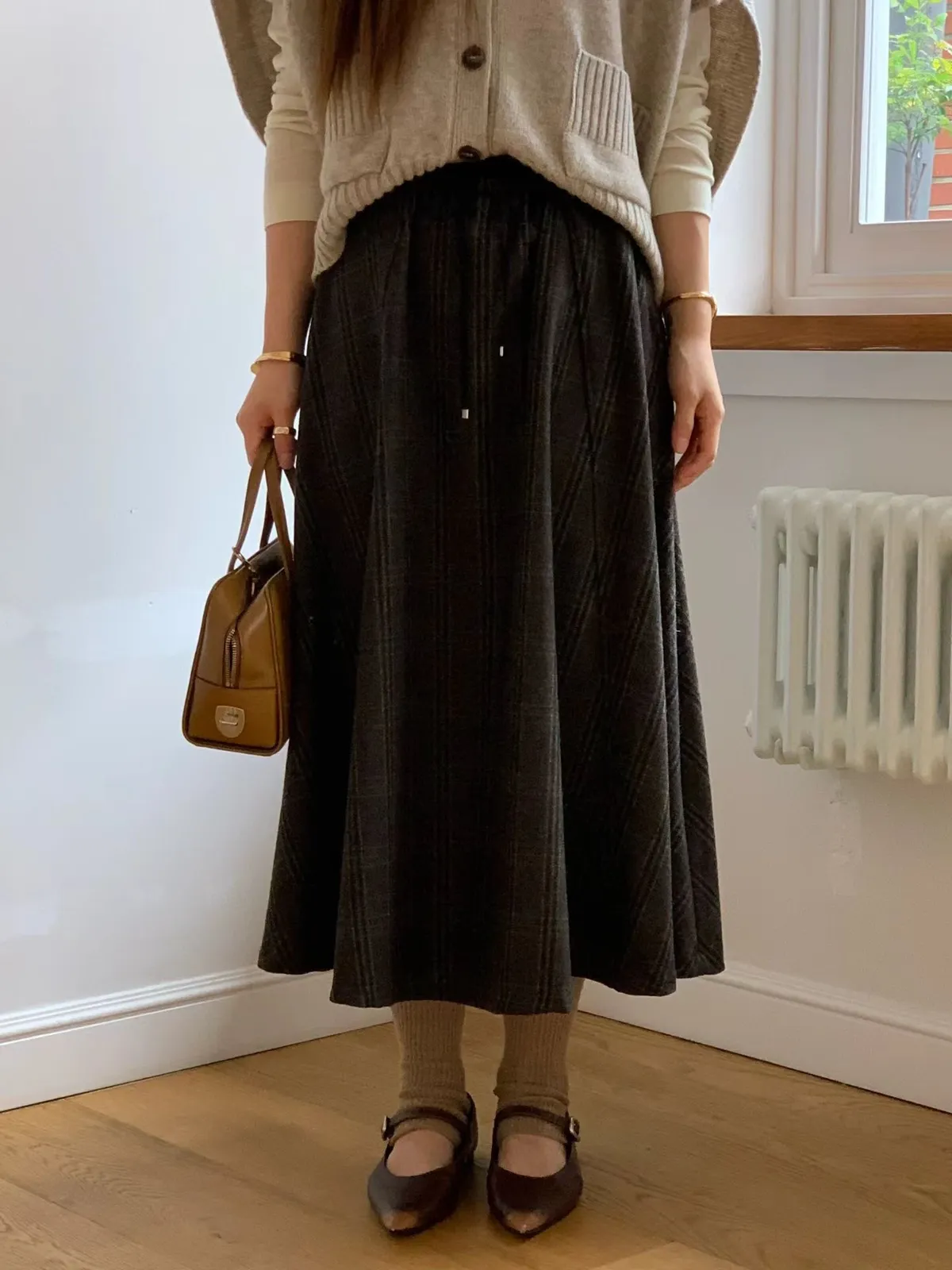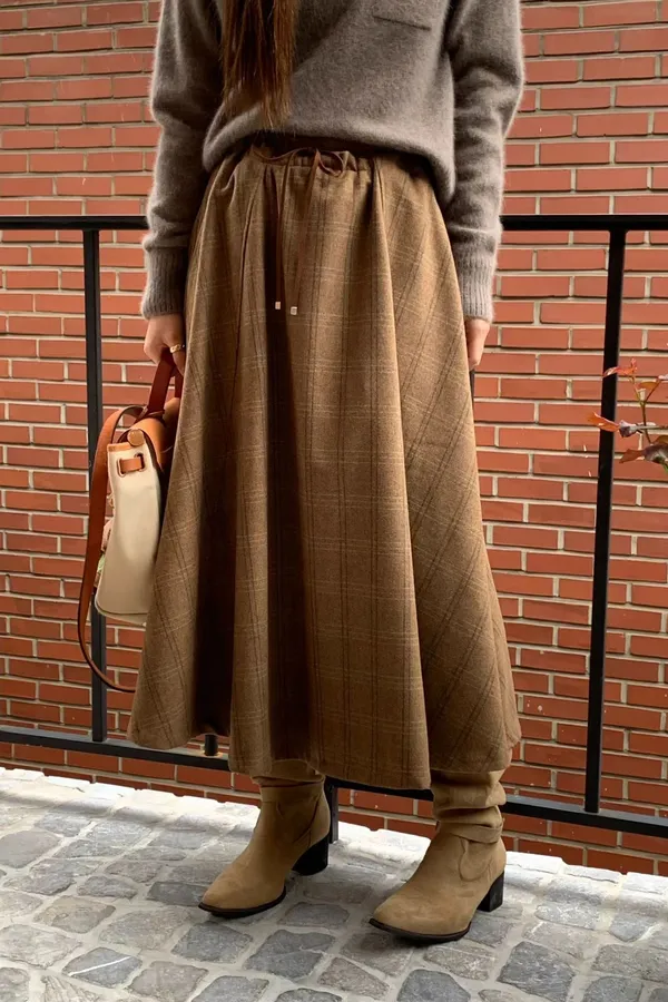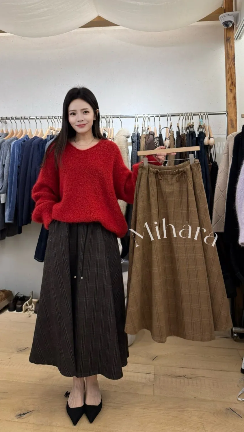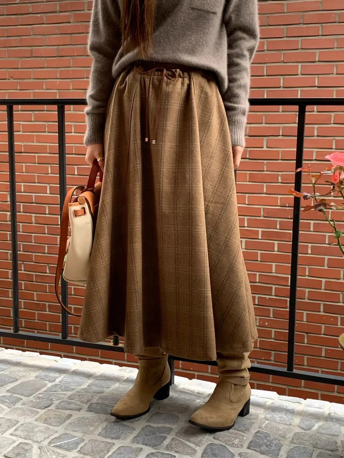 A40 1104氣質歐膩家抽繩綁帶格紋羊毛50%針織半裙