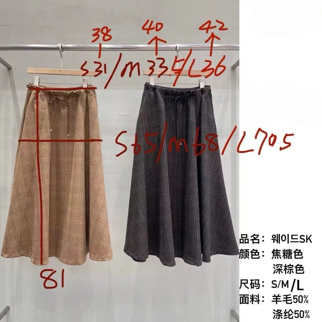 | S腰31-38臀65裙長81cm | M腰33.5-40臀68裙長81cm | L腰36-42臀70.5裙長81cm(已上尺寸為<單面平量/CM>) | 羊毛50%、聚脂纖維50%,側拉鏈、口袋,後鬆緊 | Model:東海160cm/45kg |