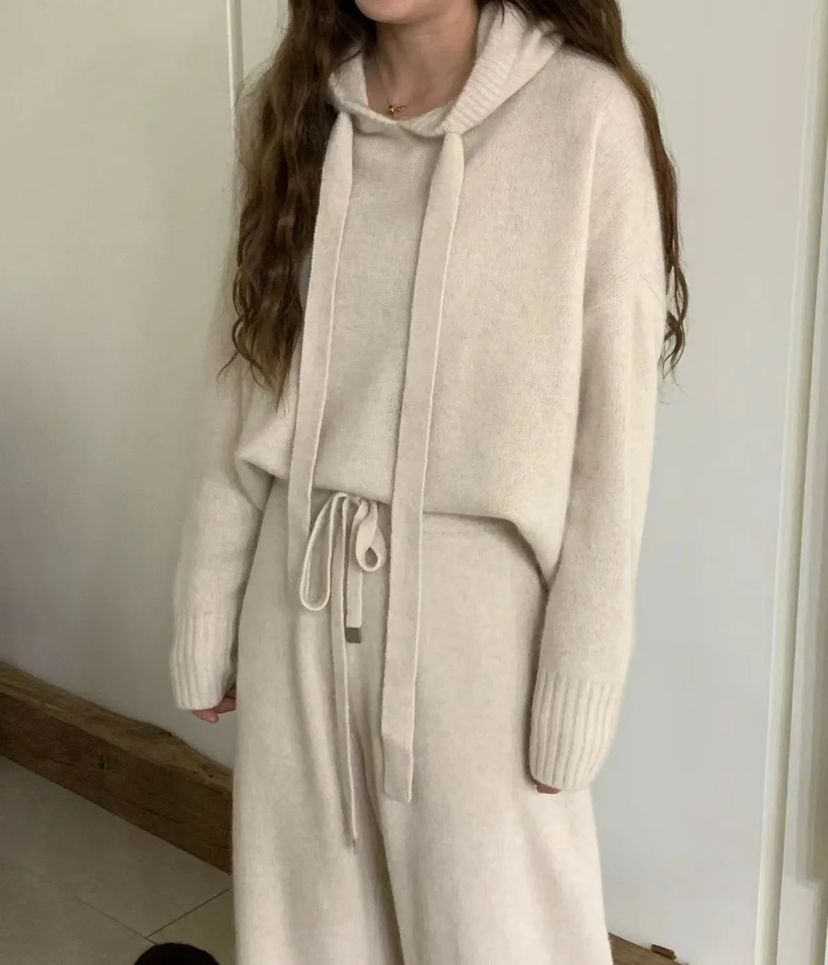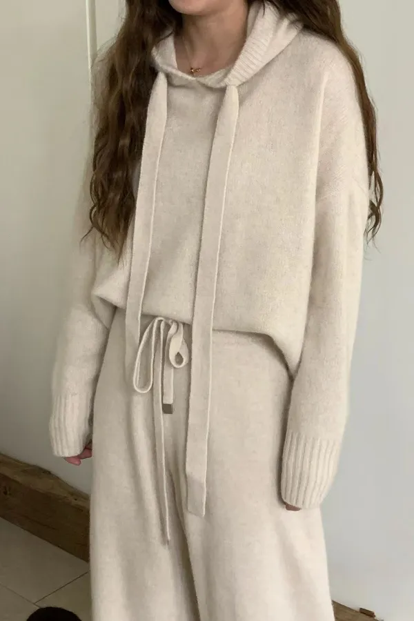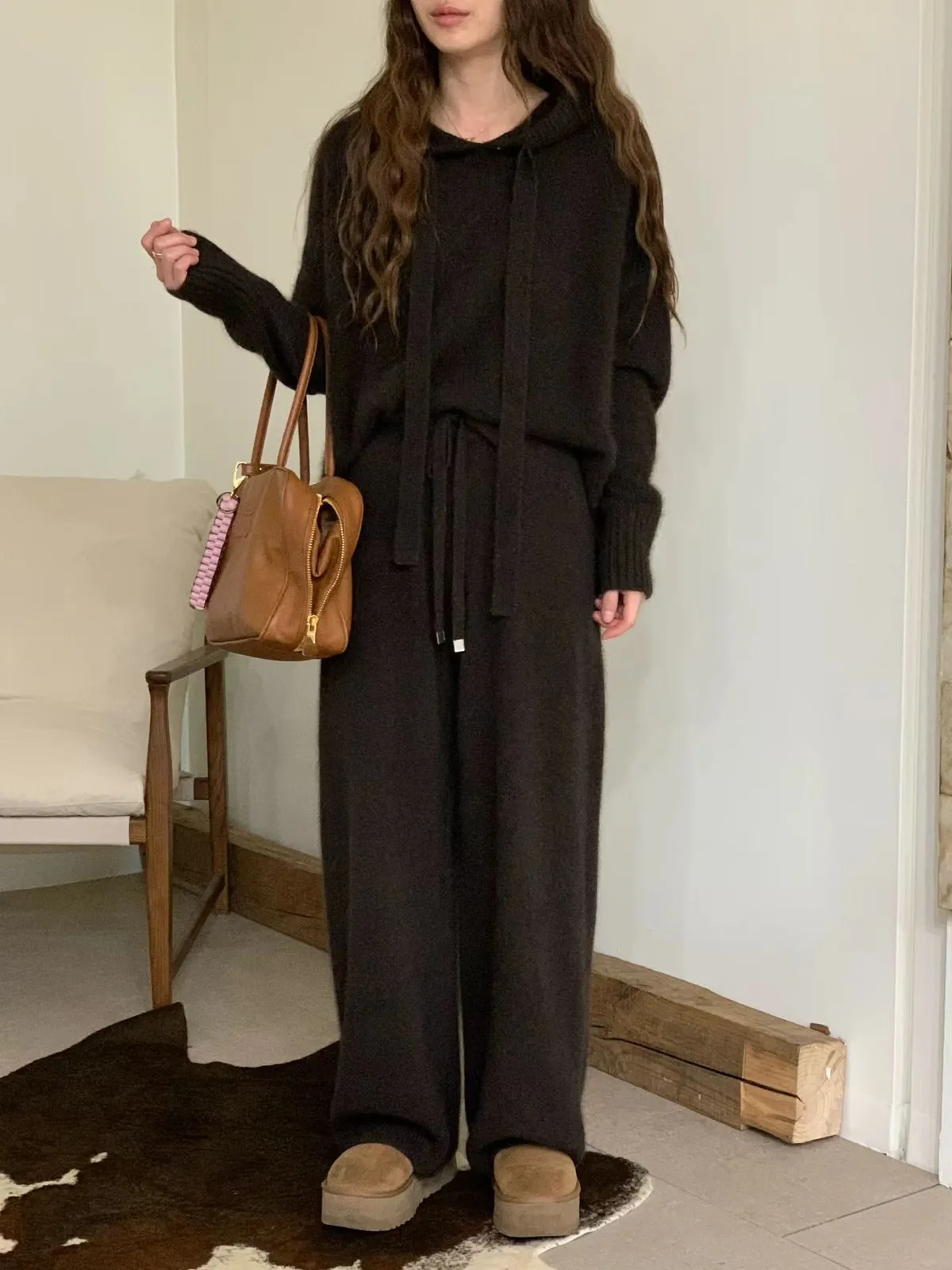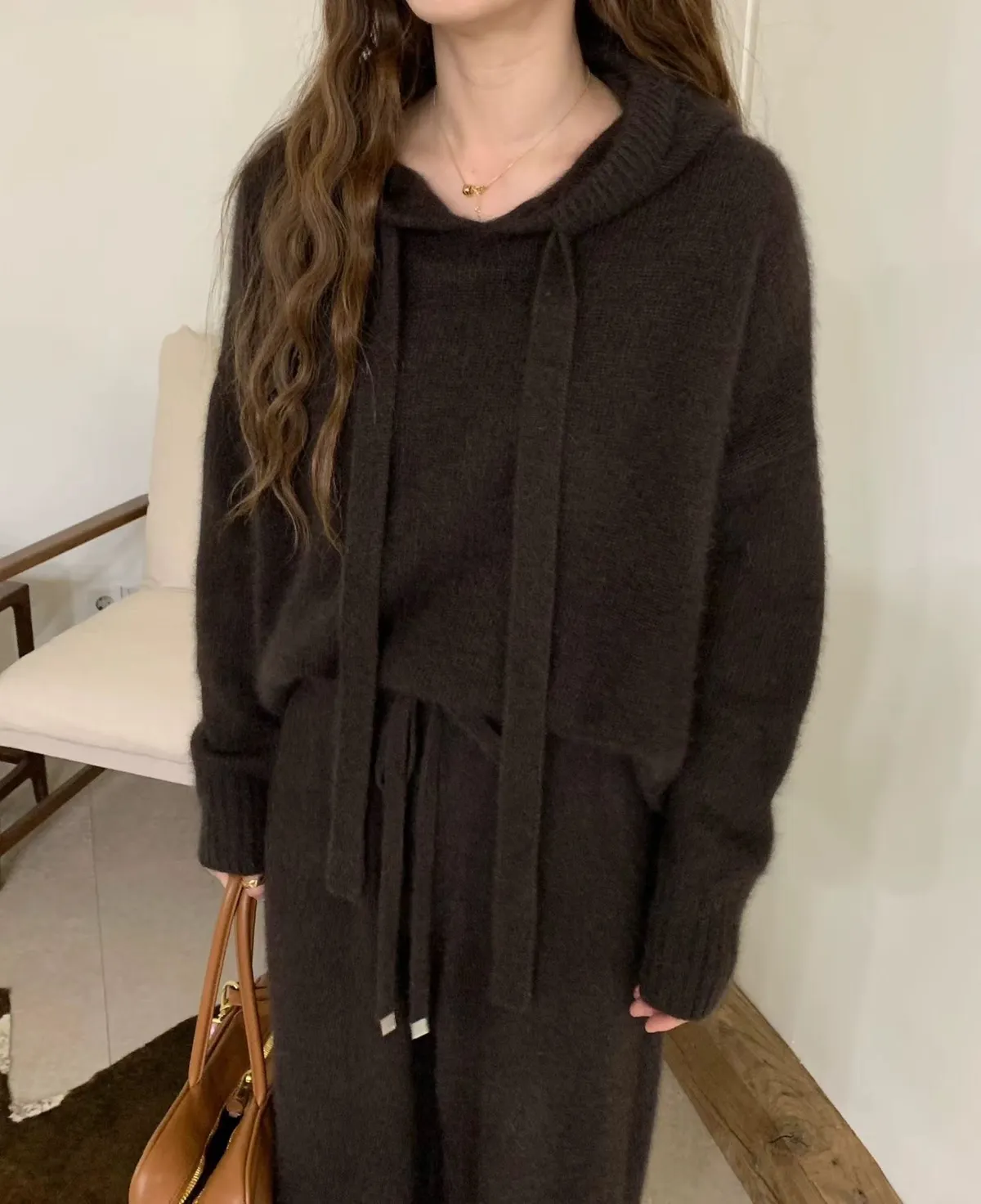 A42 1104氣質歐膩家抽繩綁帶動物毛針織寬褲
