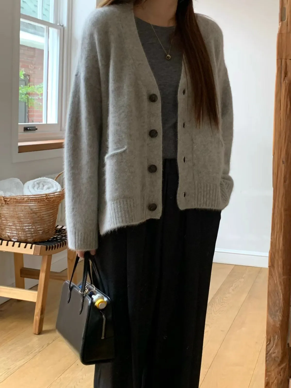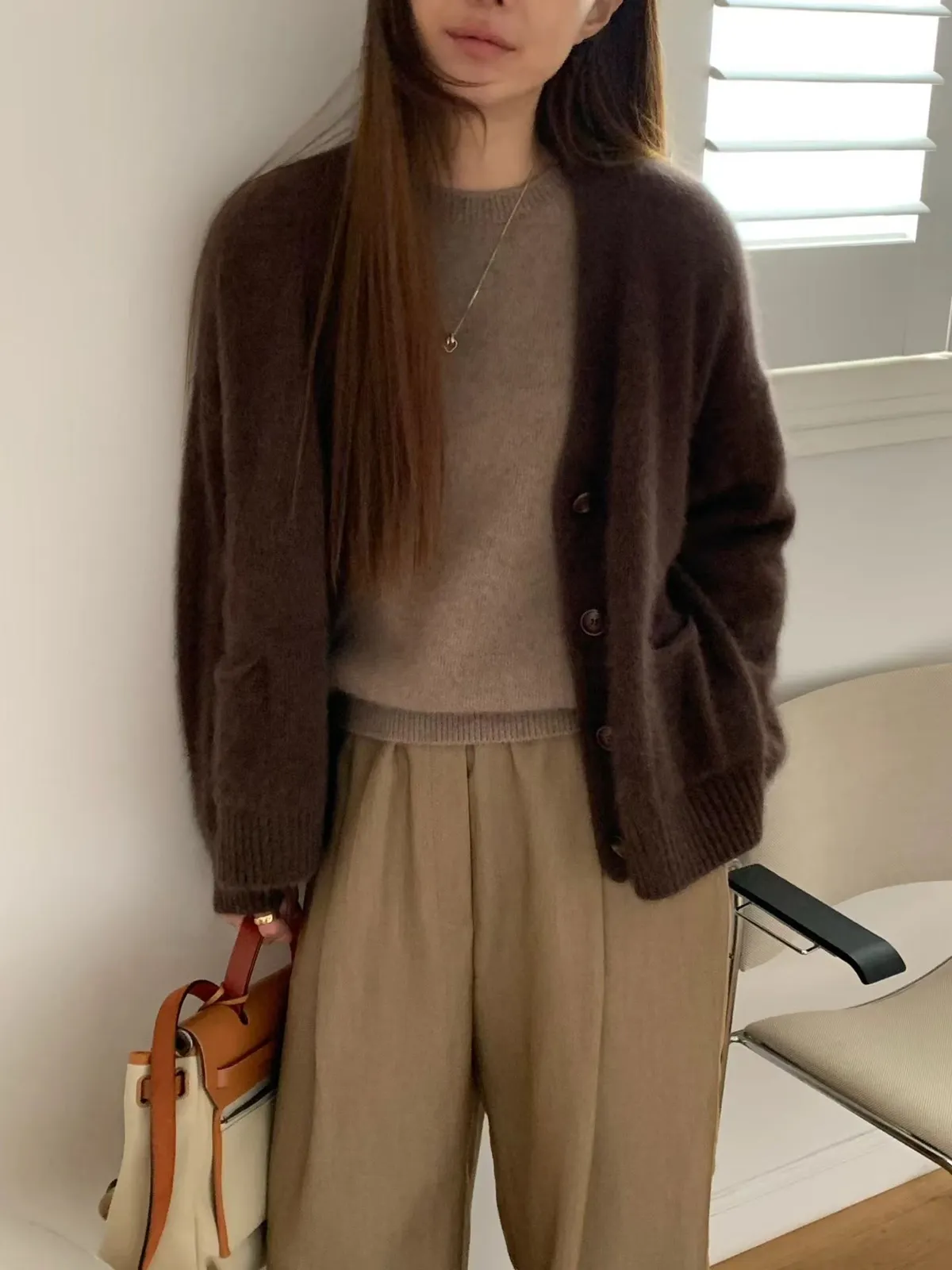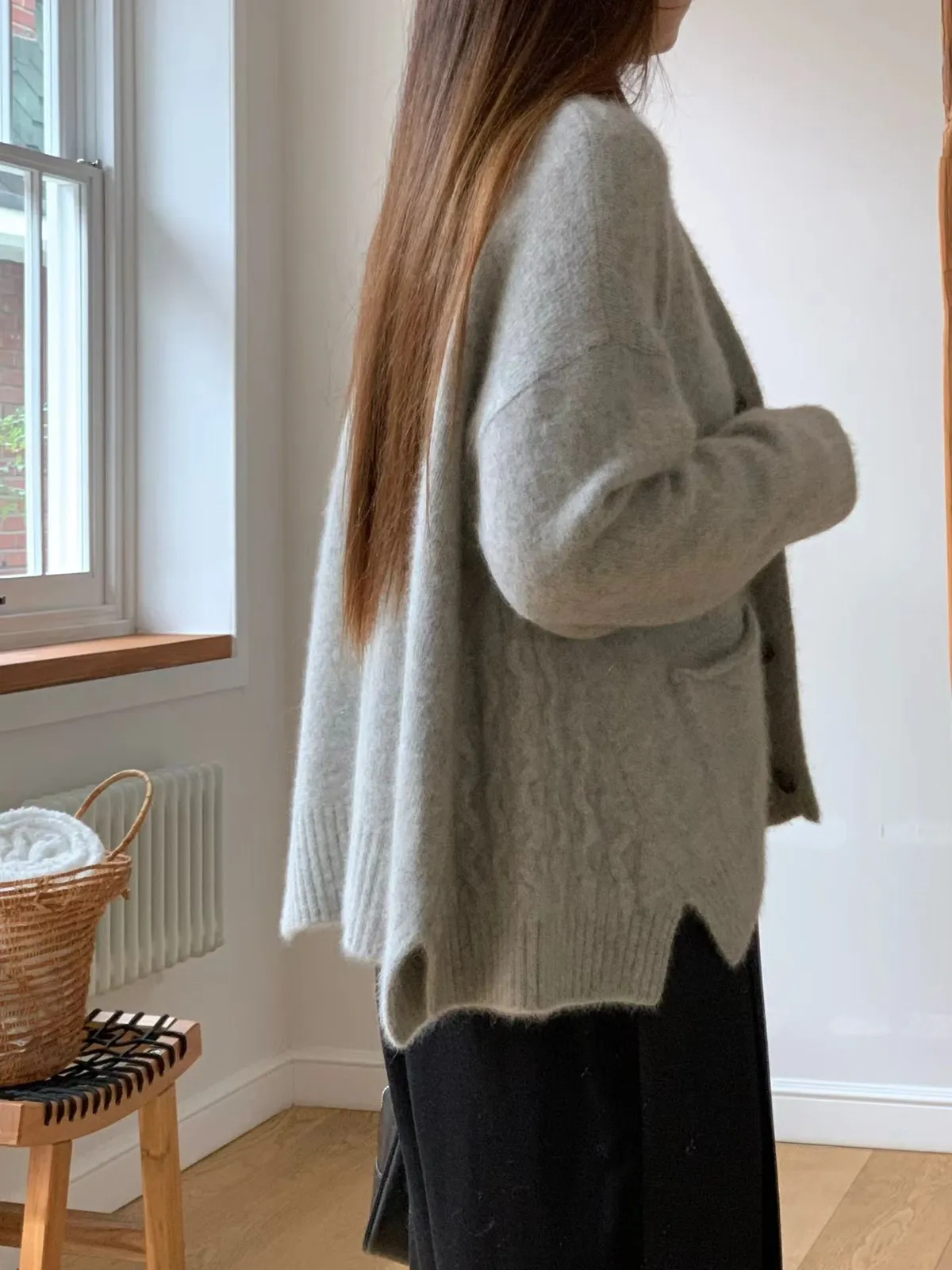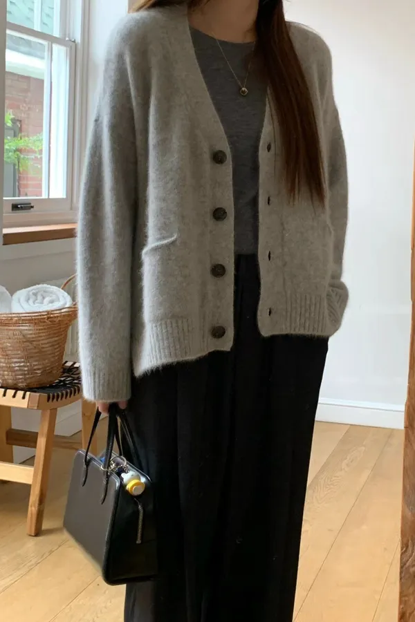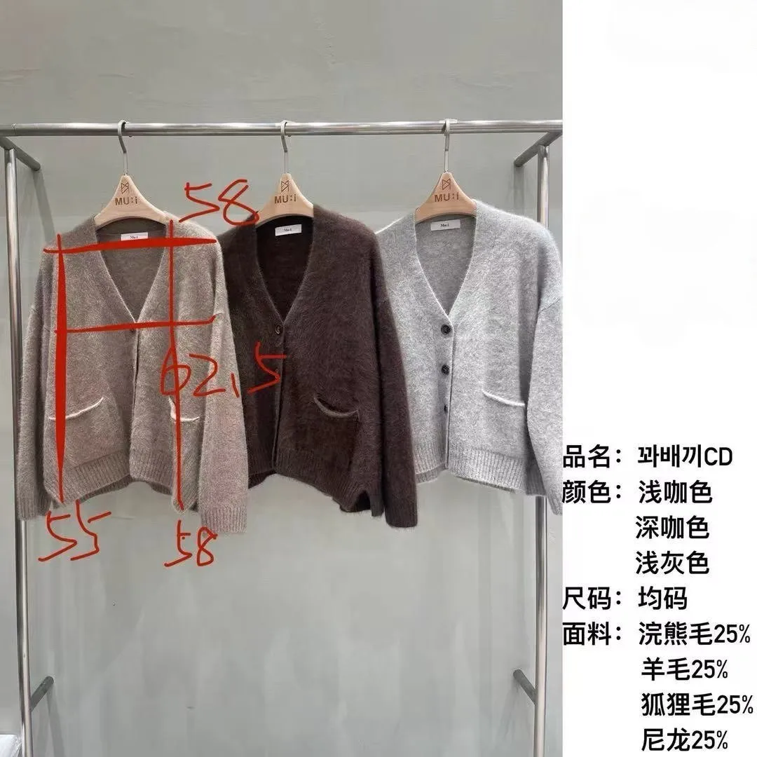 A43 1104氣質歐膩家小開衩排釦V領動物毛針織外套