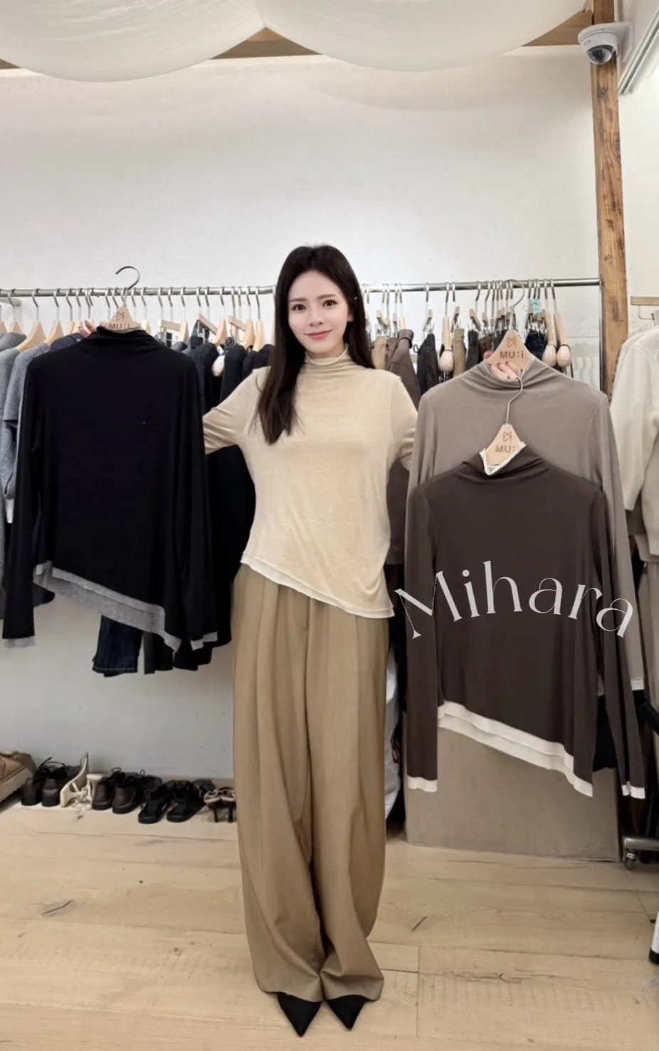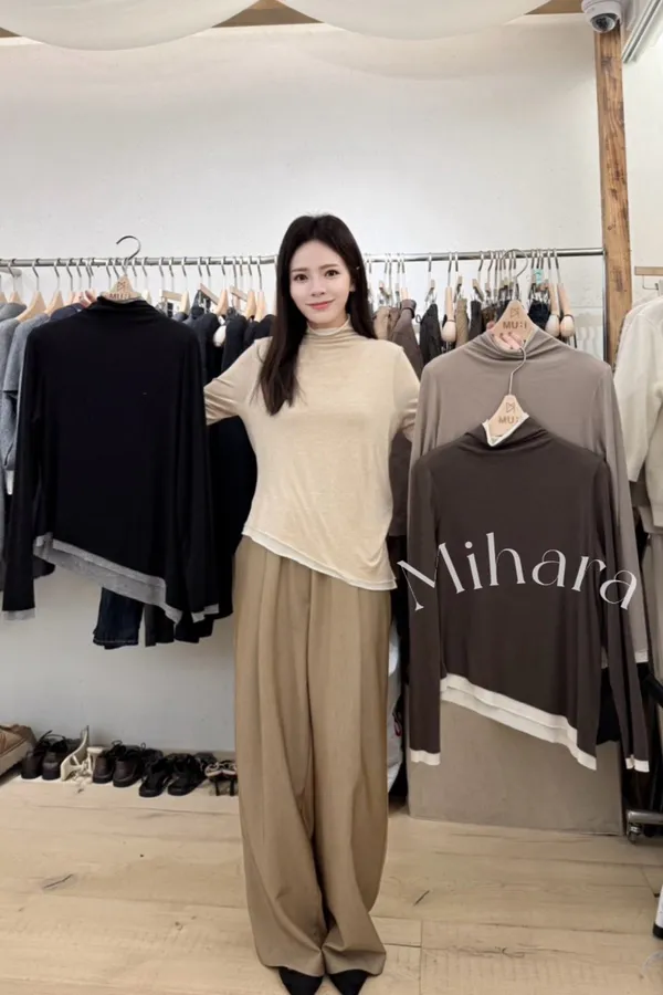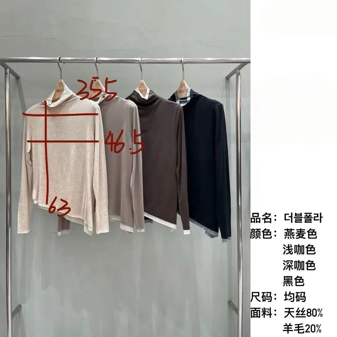A46 1104氣質歐膩家撞色滾邊天絲混羊毛高領上衣