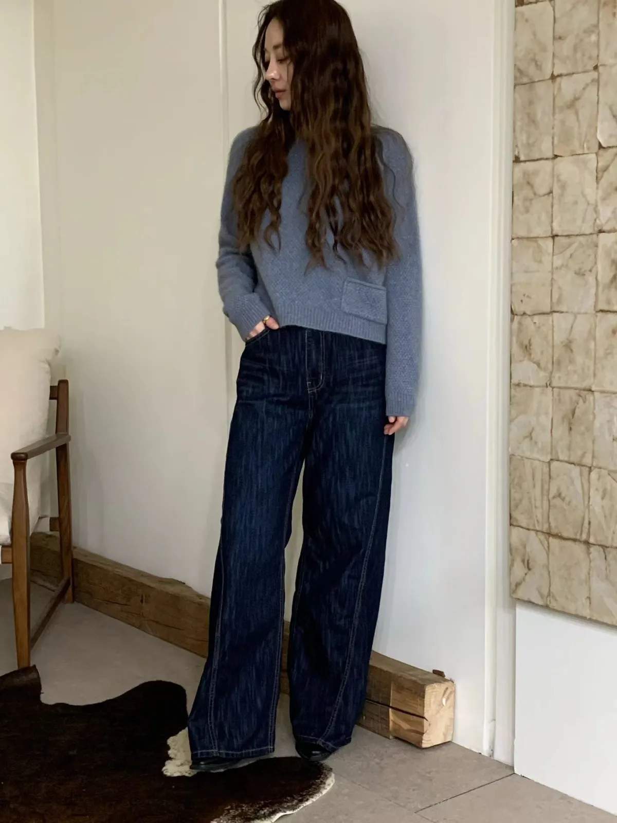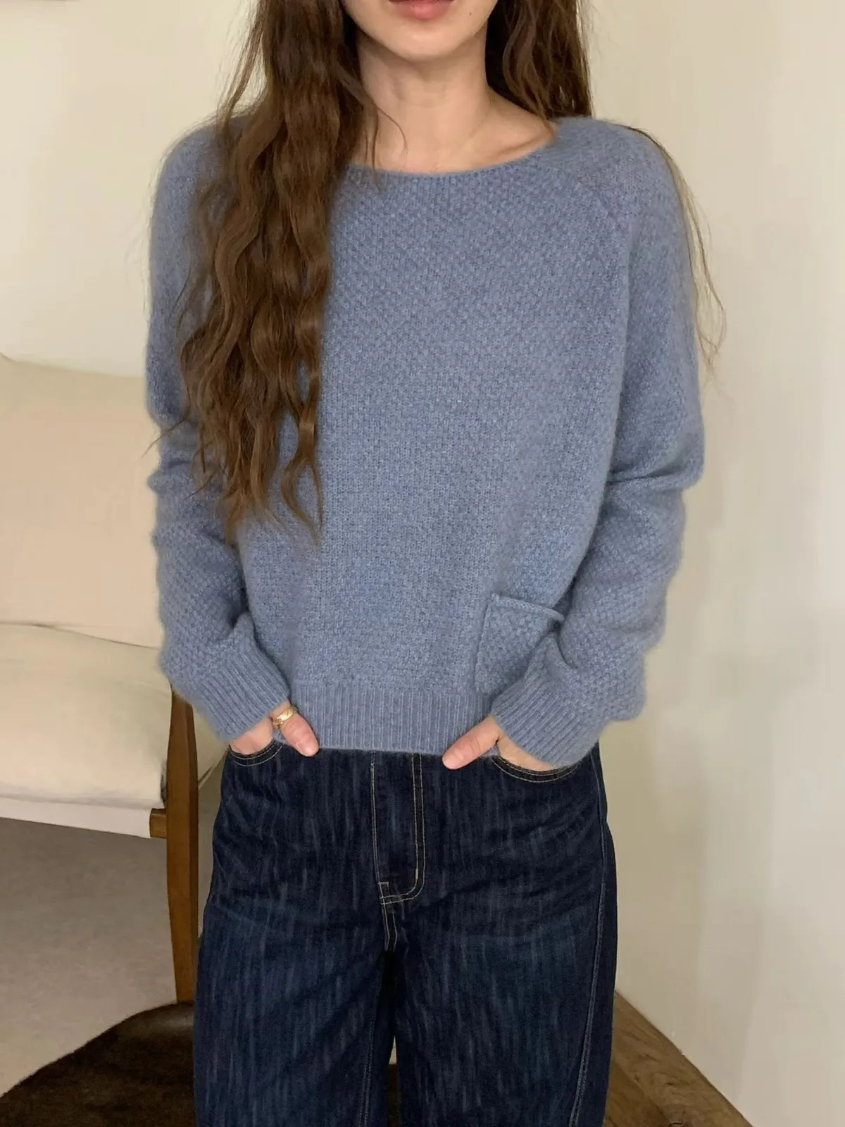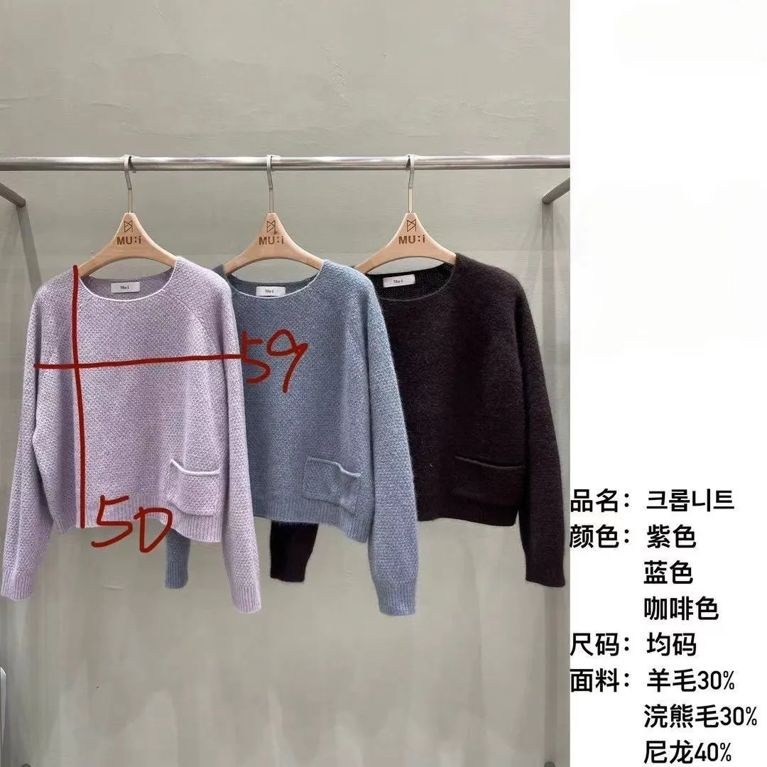 A51 1104氣質歐膩家口袋帆船領羊毛混浣熊毛針織毛衣