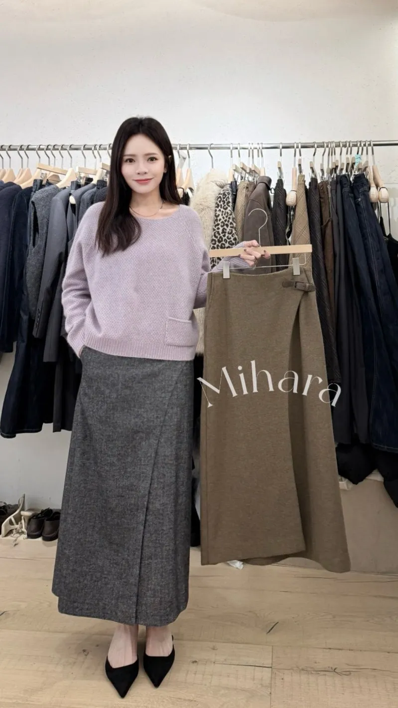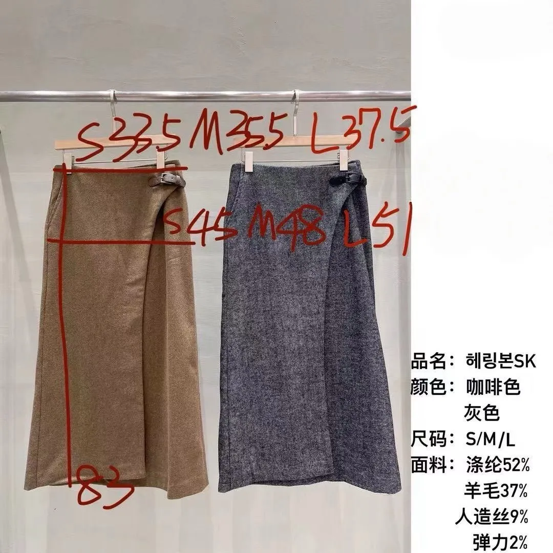 | S腰33.5臀45裙長83cm | M腰35.5臀48裙長83cm | L腰37.5臀51裙長83cm(已上尺寸為<單面平量/CM>) | 聚脂纖維52%、羊毛37%、人造絲9%、彈力2%,側拉鏈、口袋,有內裏 | Model:東海160cm/45kg |