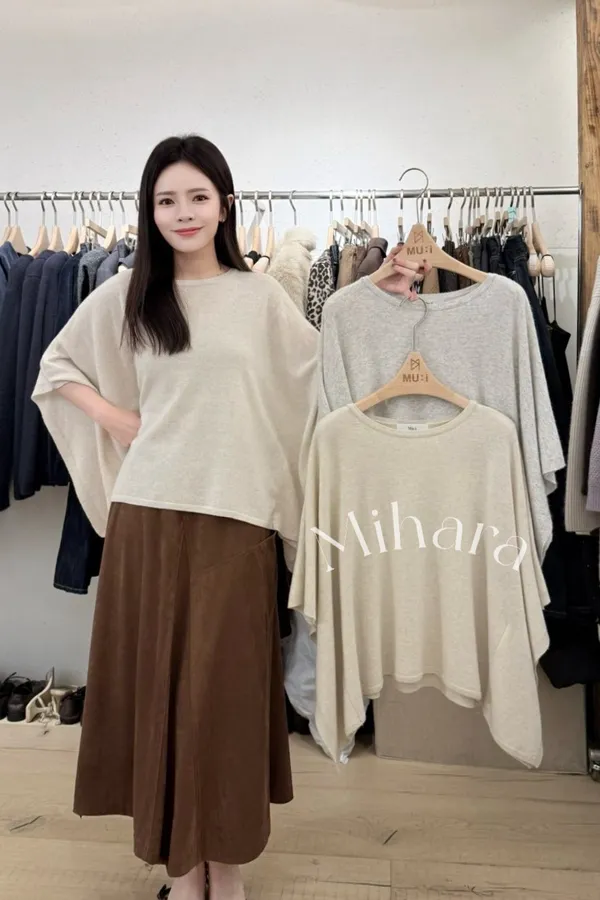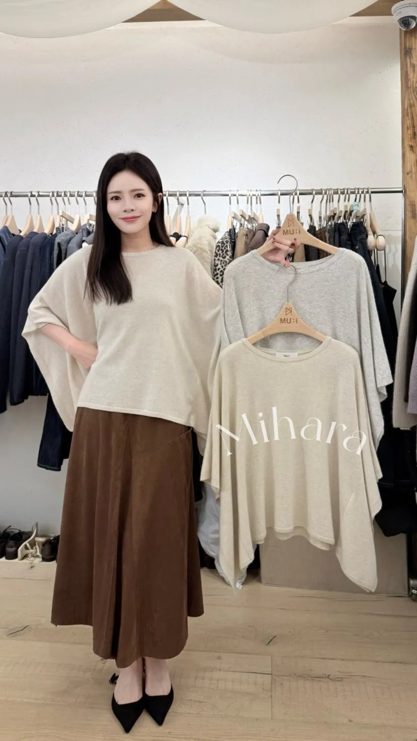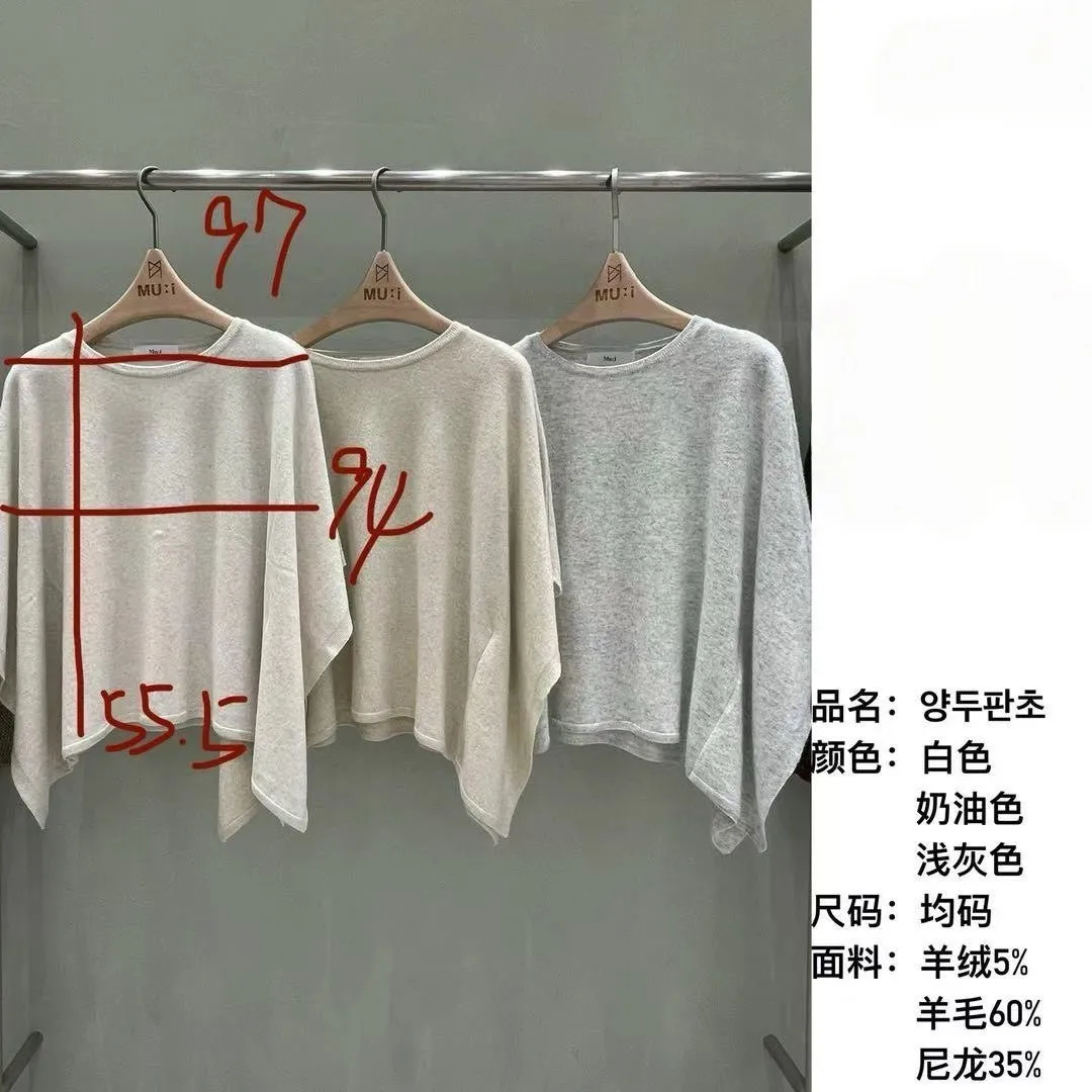 A53 1104氣質歐膩家羊毛混羊絨圓領斗篷針織上衣