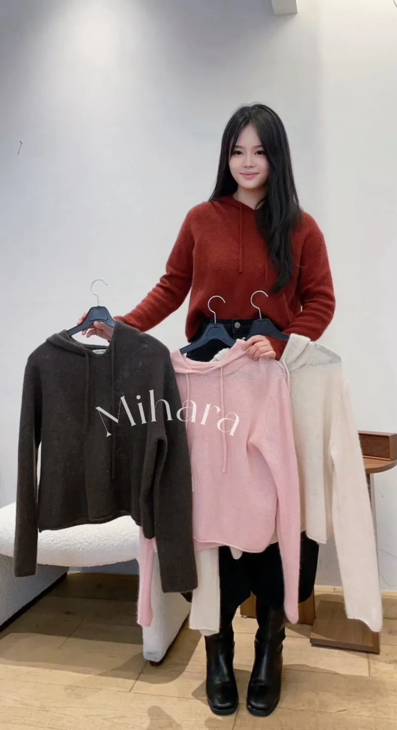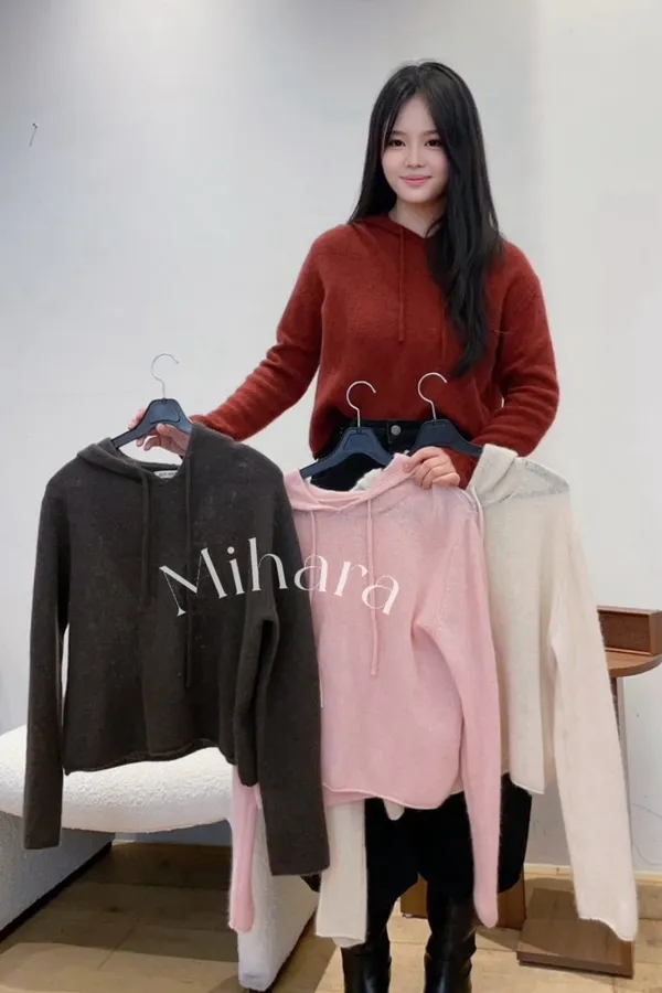 A3 1105高檔Ab家抽繩連帽羊毛混馬海毛針織毛衣