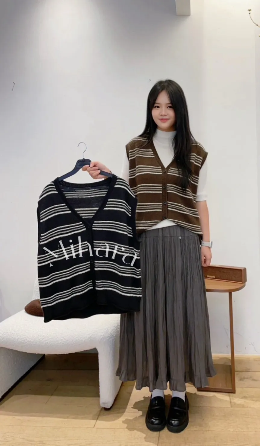 A7 1105高檔Ab家橫條排釦V領羊毛100%針織背心