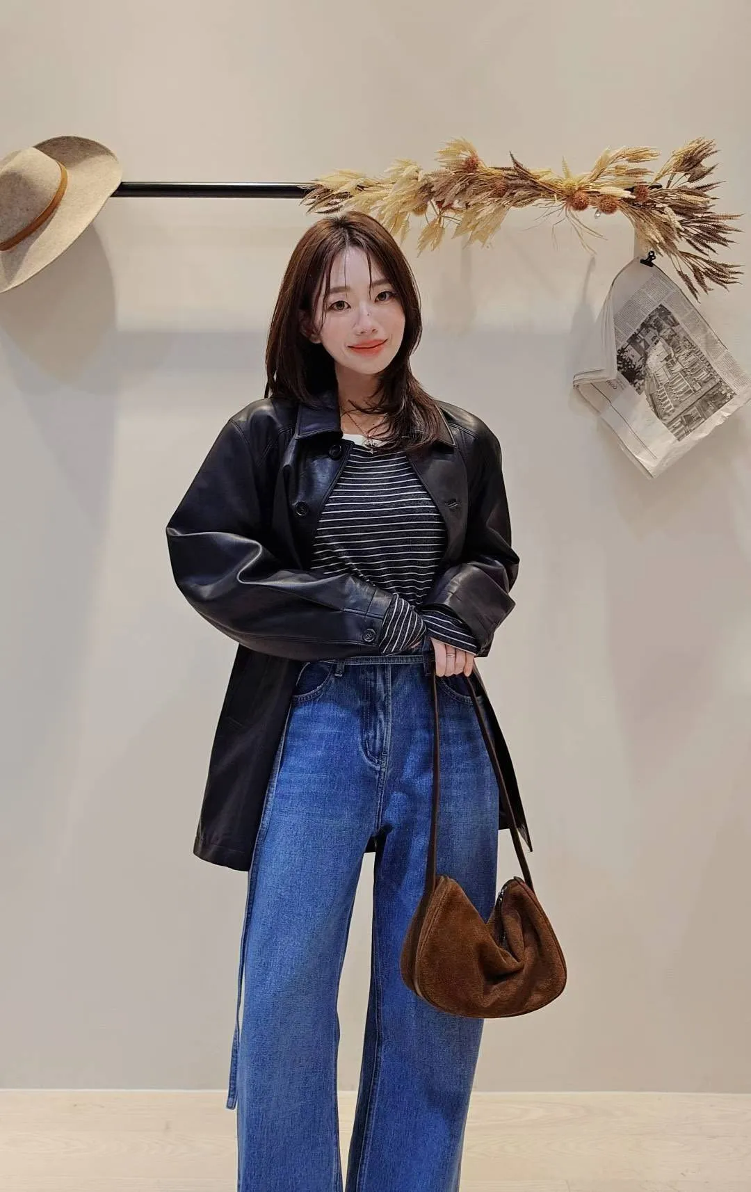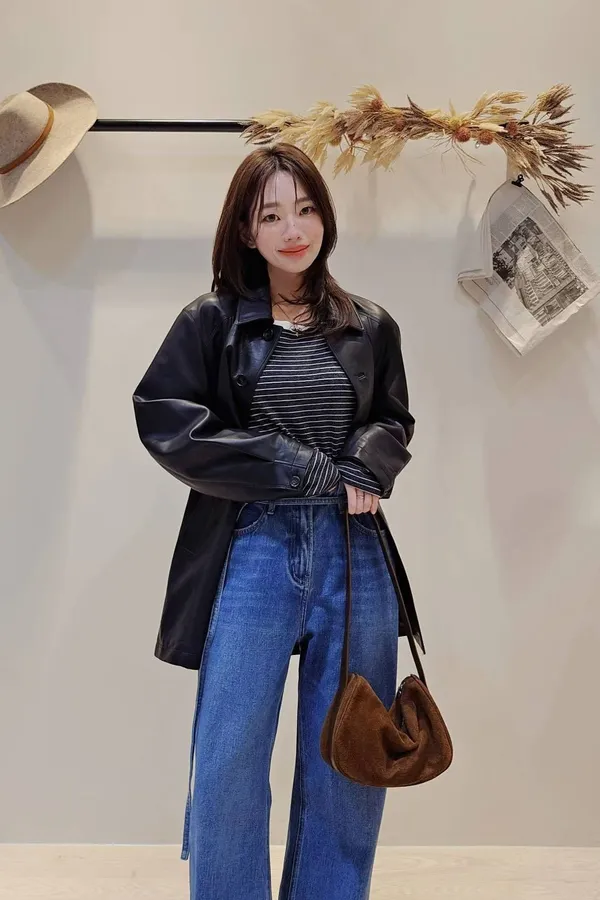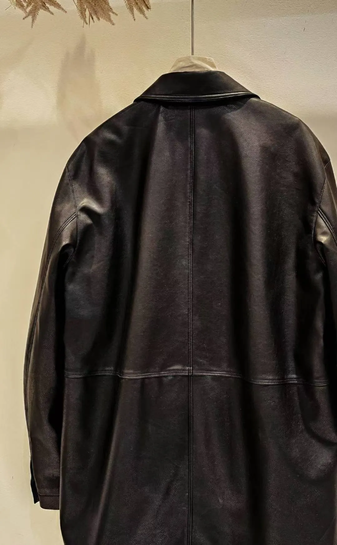 E87漂亮歐膩極簡俐落仿皮革長夾克