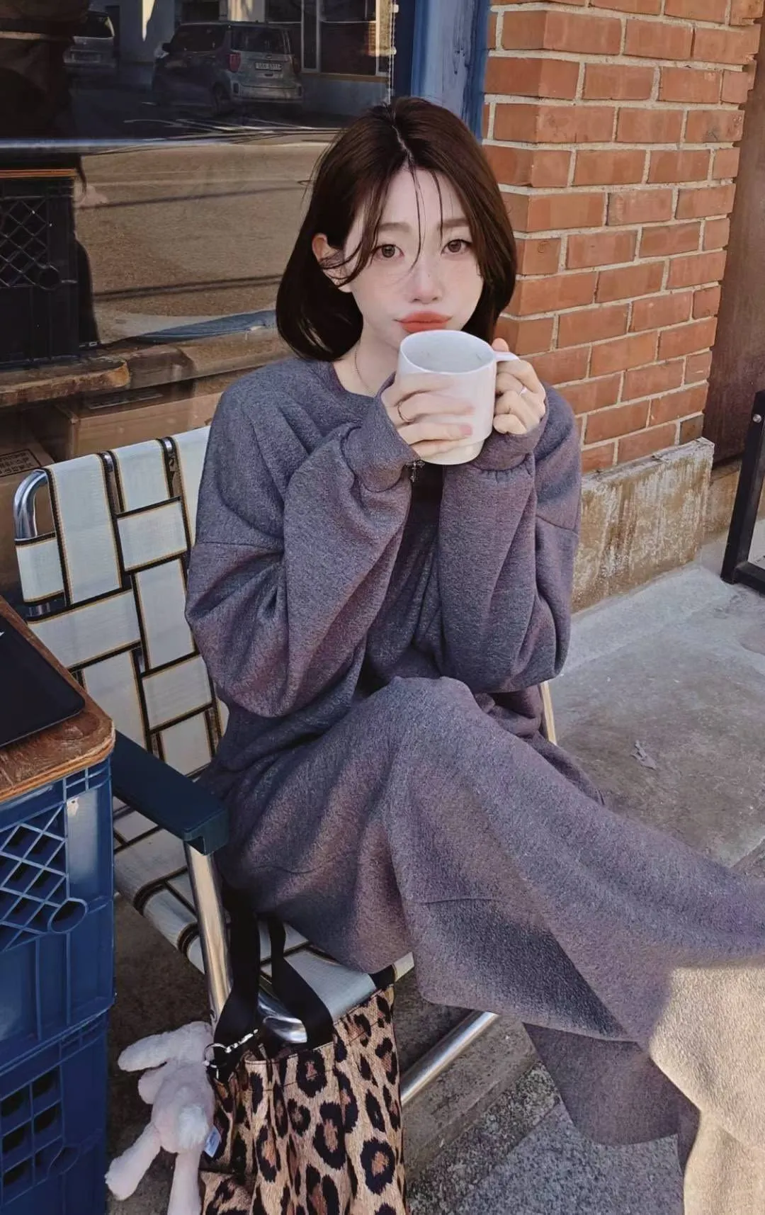 E80漂亮歐膩磨毛休閒鬆弛感衛衣上衣