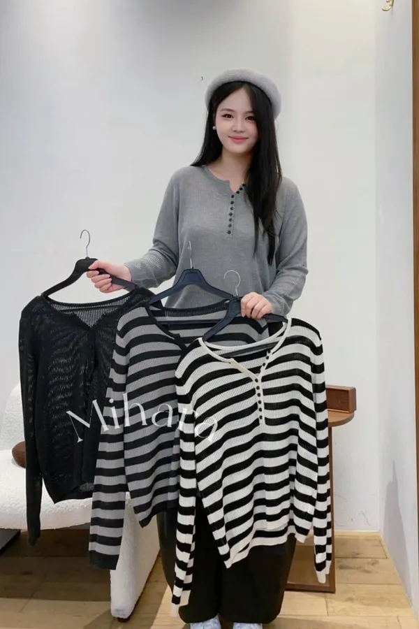 A18 1105高檔Ab家排釦小V領天絲混人造絲針織上衣