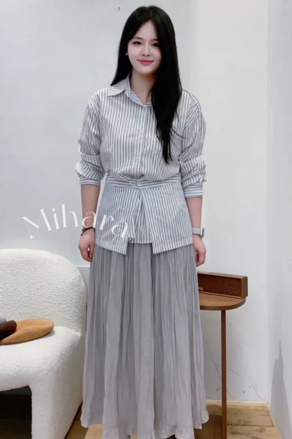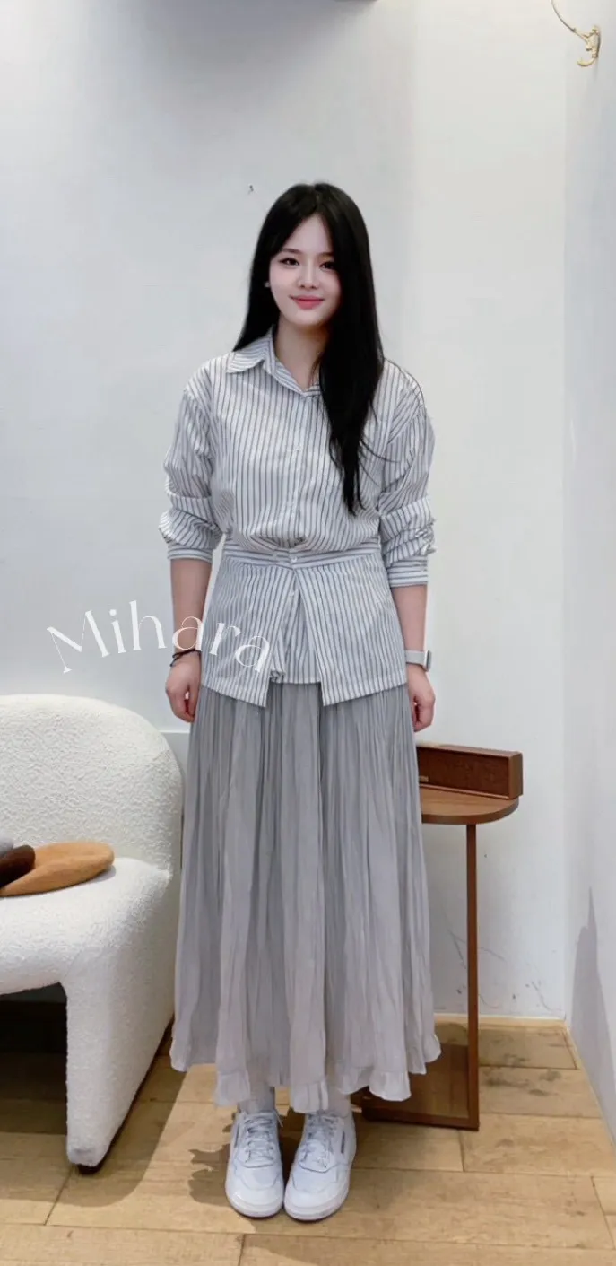 A23 1105高檔Ab家細直紋排釦立領襯衫附一小片裙